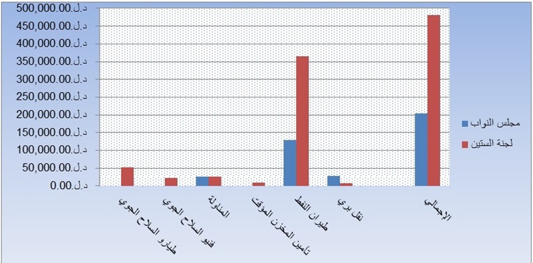 - وكدراسة للفرق بين تكاليف النقل لآخر استحقاقين انتخابيين (الهيئة التأسيسية والبرلمان)، فالرسم البياني التالي يوضح هذا الفرق في تكاليف نقل المواد الانتخابية الحساسة والغير حساسة واسترجاعها إلى ومن مكاتب الإدارة الانتخابية في المنطقتين الشرقية والجنوبية وكذلك الحقول النفطية. مع العلم بأن السبب في اختيار نوع النقل جواً أو براً هو الظروف الأمنية وكذلك توفر الطائرات الناقلة من عدمها.