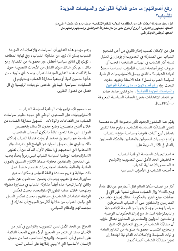 رفع اصواتهم: مامدى فاعلية القوانين والسياسات المؤيدة للشباب؟