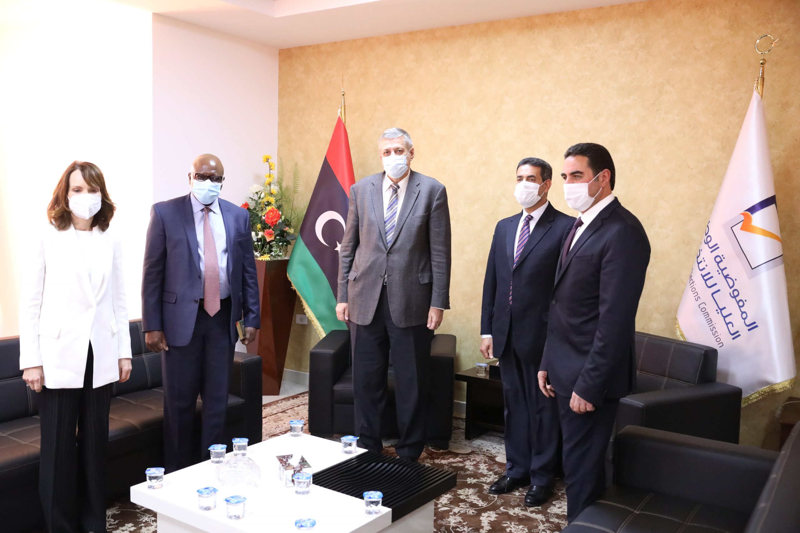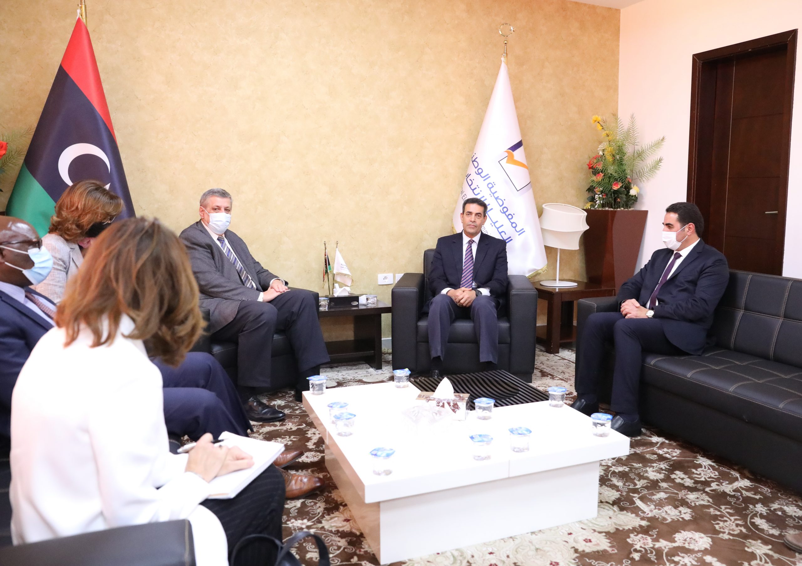 HNEC Chairman, Dr. Emad Al-Sayah, welcomed, At HNEC Headquarters in Tripoli, H.E. Mr. Ján Kubiš, the UN Secretary-General Special Envoy, in the presence of Mr Abdul-Hakim Belkhair, HNEC Board Member, Mr. Panto Litec, Chief Electoral Adviser, UNSMIL, Mr. Raisedon Zenenga, Assistant Secretary-General and Mission Coordinator and Ms. Georgette Gagnon, Assistant Secretary-General, Resident and Humanitarian Coordinator for Libya.