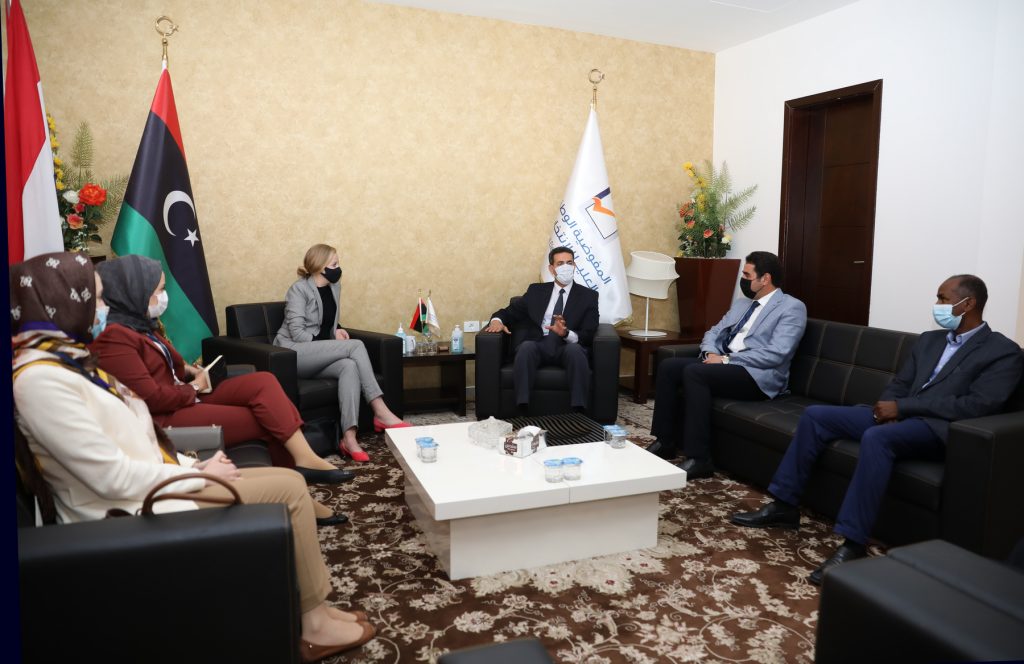 HNEC Chairman Dr. Emad Al-Sayah, welcomed, today, Wednesday, March 17th, 2021, the Deputy Ambassador of the Netherlands to Libya, H.E. Gabrielel Metz, and her accompanying delegation, in the presence of the two members of HNEC Board, Mr. Abd Al-Hakim Al-Shaab and Mr. Abu Bakr Marda, as part of the international community’s support for the elections in Libya.