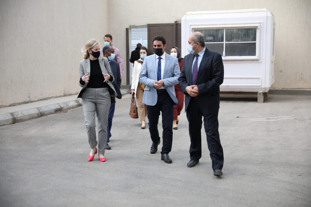 After the meeting, the two members of HNEC Board Mr. Al-Shaab and Mr. Marda accompanied H.E. the Deputy Ambassador and her accompanying delegation, for a tour inside HNEC premises to see its facilities and the level of preparations, in terms of the infrastructure, that ensures the provision of ideal conditions for holding elections, in accordance with internationally recognized standards.
