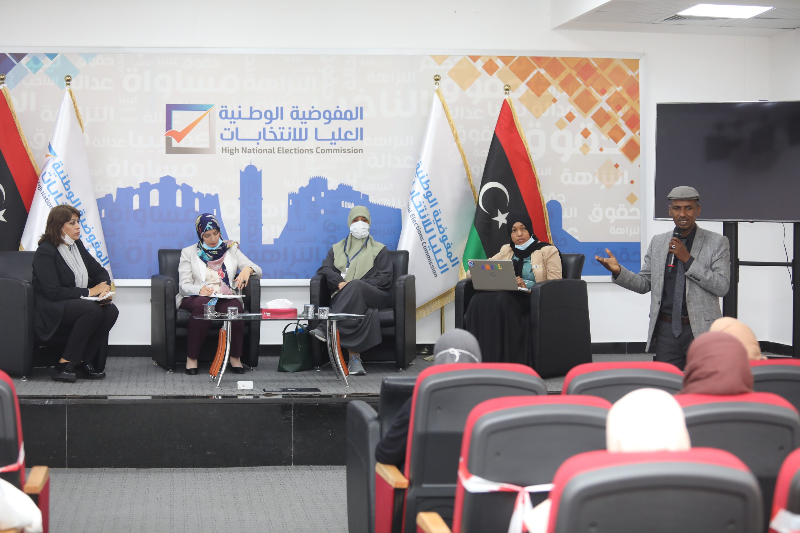 التئمت صباح اليوم الأحد 21 مارس 2021، بمقر المفوضية الوطنية العليا للانتخابات، مائدة مستديرة حول تعزيز مشاركة المرأة في العملية الانتخابية، بحضور عضوي مجلس المفوضية السيدة رباب حلب والسيد أبوبكر مردة، ومسؤول وحدة دعم المرأة السيدة سوزان حمي، وعدد من ممثلات المنظمات المعنية بحقوق المرأة وذلك لمناقشة التحديات التي تعترض مشاركتها في الانتخابات القادمة.
