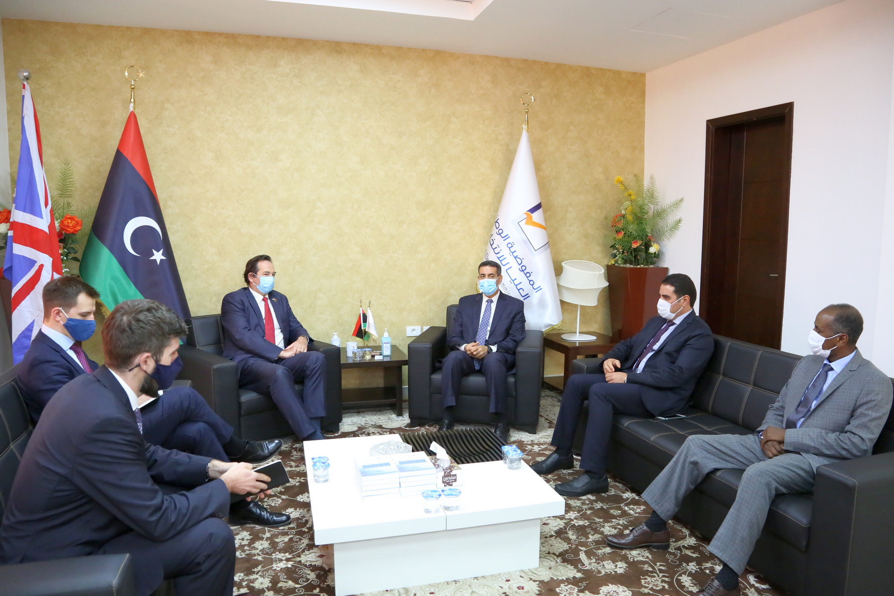 تتواصل زيارات ممثلي السفارات والبعثات الدولية إلى مقر المفوضية الوطنية العليا للانتخابات في إطار دعم المجتمع الدولي للعملية الانتخابية في ليبيا، حيث استقبل رئيس مجلس المفوضية السيد د.عماد السايح اليوم الخميس 25 مارس 2021، سعادة سفير المملكة المتحدة لدى ليبيا السيد نيكولاس هوبتن والوفد المرافق له بحضور عضوي مجلس المفوضية السيد عبدالحكيم الشعاب، والسيد أبوبكر مردة وذلك بديوان مجلس المفوضية.