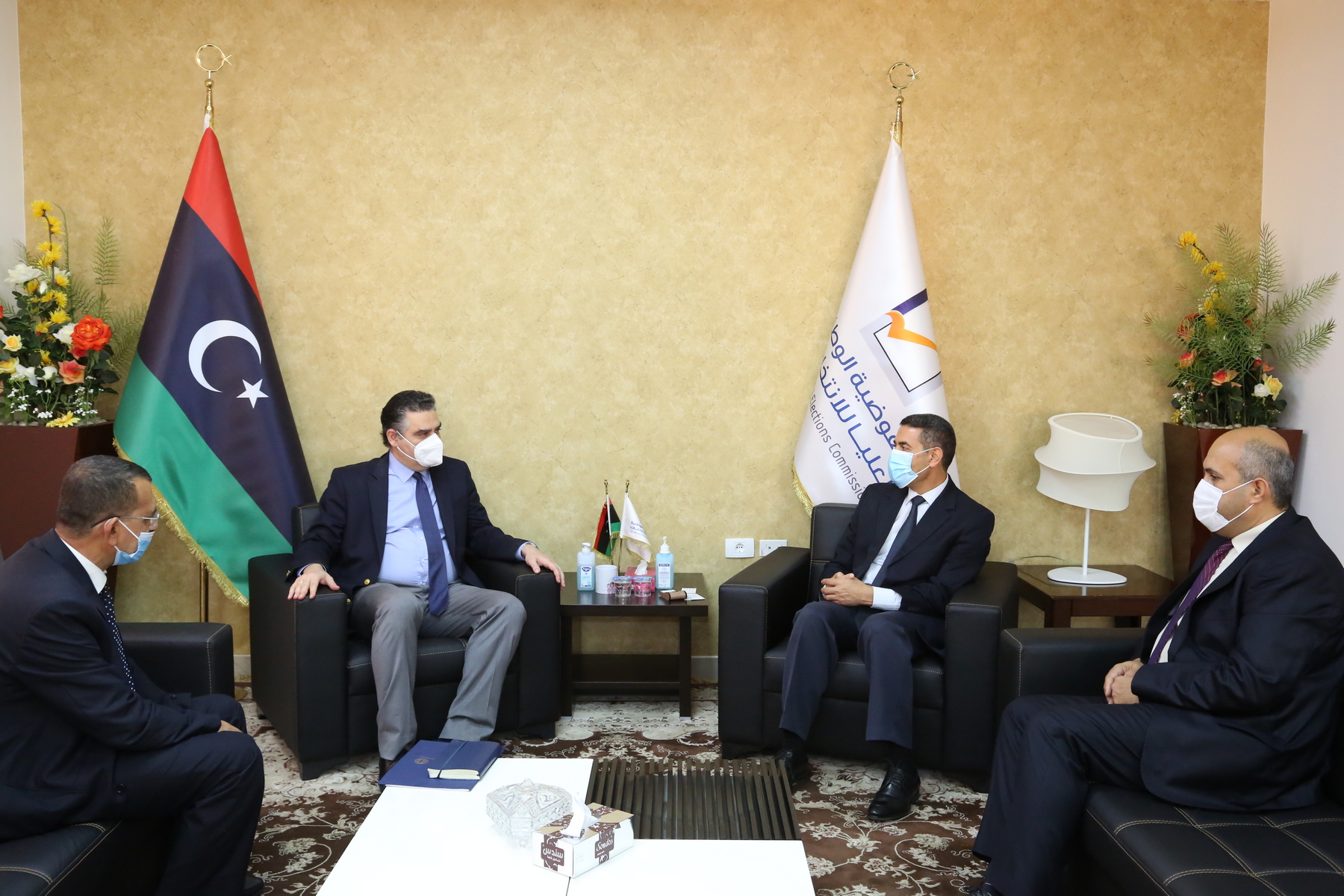 تتواصل زيارات ممثلي السفارات والبعثات الدولية إلى مقر المفوضية الوطنية العليا للانتخابات في إطار دعم المجتمع الدولي للعملية الانتخابية في ليبيا، حيث استقبل رئيس مجلس المفوضية الوطنية العليا للانتخابات السيد د.عماد السايح صباح اليوم الخميس 29 أبريل 2021م، القائم بالأعمال اليوناني السيد ايوانيس ستاماتيكوس وذلك بديوان مجلس المفوضية.