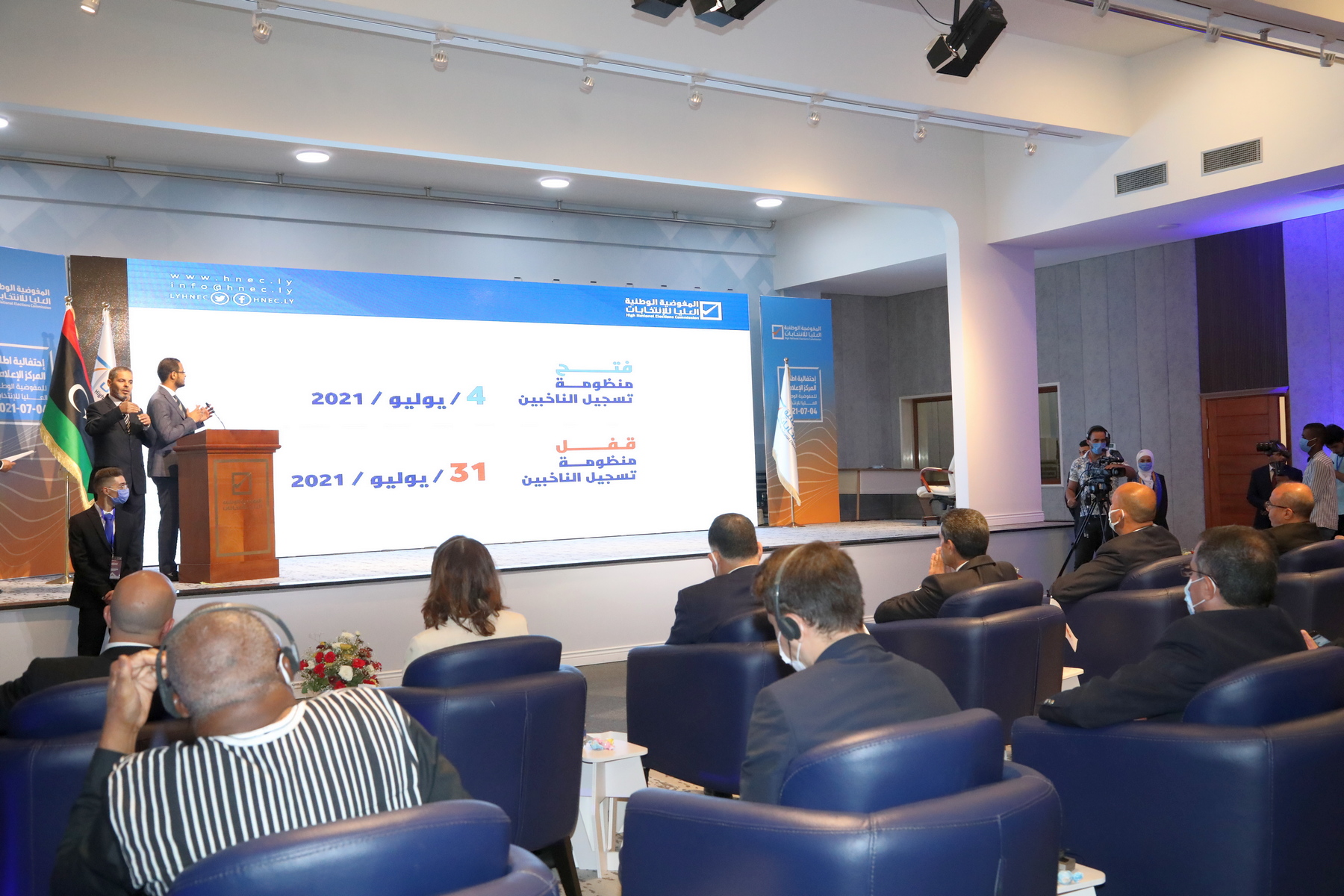 أعلن رئيس مجلس المفوضية الوطنية العليا للانتخابات السيد د. عماد السايح عن انطلاق عملية تحديث سجل الناخبين كأول مرحلة من مراحل العملية الانتخابية المقررة في 24 ديسمبر القادم، جاء ذلك خلال كلمته في الحفل الذي نظمته المفوضية بمناسبة افتتاح مركزها الإعلامي اليوم 4 يوليو2021، بحضور رئيسيّ المجلس الرئاسي السيد موسى الكوني والسيد عبد الله اللافي ورئيس حكومة الوحدة الوطنية السيد عبدالحميد ادبيبة ونائبة المبعوث الخاص للأمين العام للأمم المتحدة السيدة جورجيت قاقنون، وأعضاء مجلس المفوضية وسفراء وممثلين عن البعثات الدبلوماسية، وممثلين عن منظمات المجتمع المدني ووسائل الإعلام ولفيف من الضيوف.
