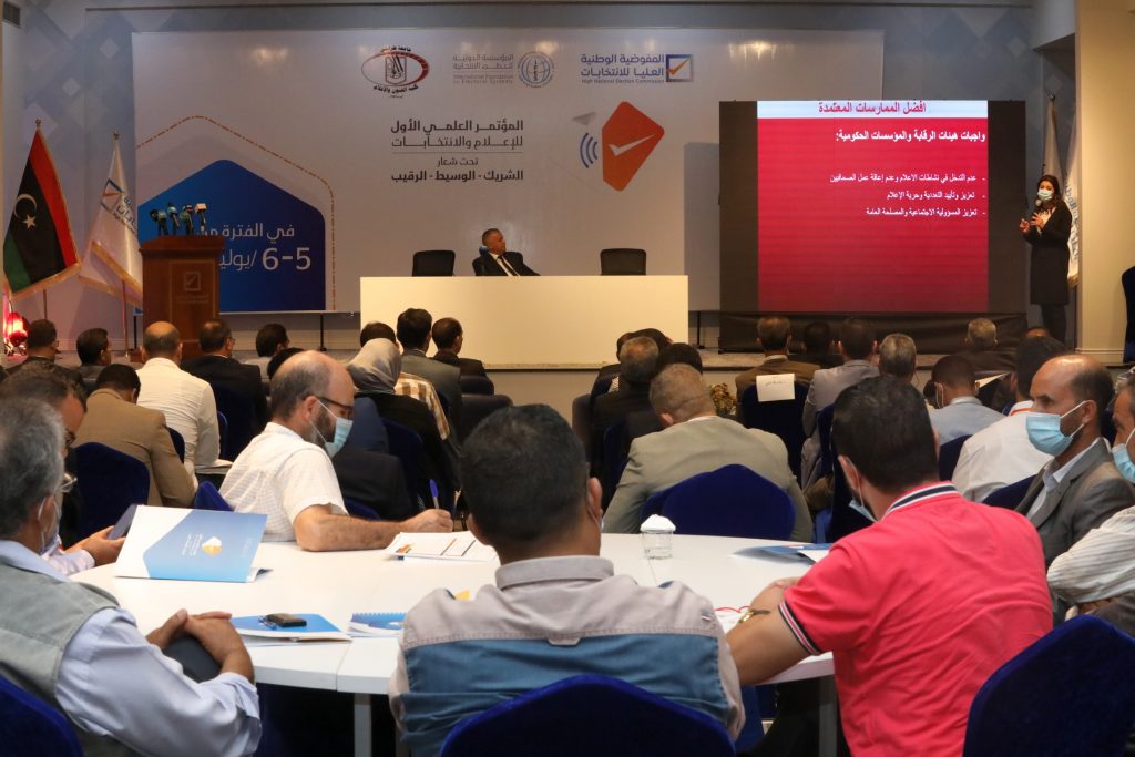 انطلقت صباح اليوم الاثنين 5 يوليو 2021 فعاليات المؤتمر العلمي الأول للإعلام والانتخابات، الذي تنظمه المفوضية الوطنية العليا للانتخابات بالتعاون مع كلية الفنون والإعلام بجامعة طرابلس والمنظمة الدولية للنظم الانتخابية (IFES)، تحت شعار (الشريك- الوسيط- الرقيب)، بحضور نخبة من الخبراء والمثقفين والأكاديميين ولفيف من الضيوف، وذلك بالمركز الإعلامي للمفوضية.