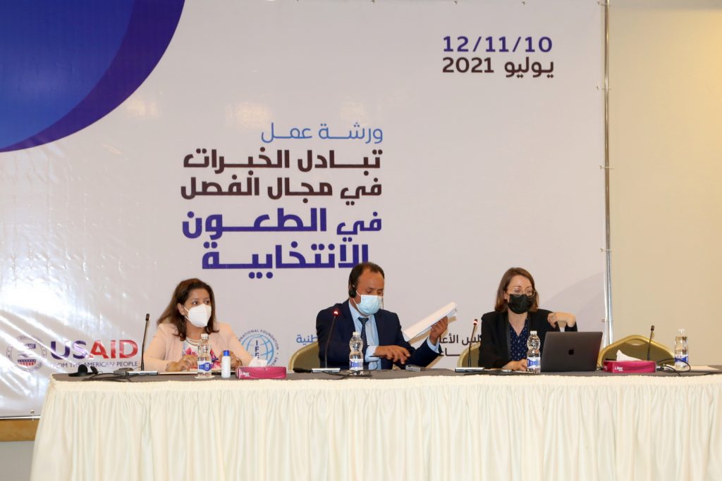 نظمت المفوضية الوطنية العليا للانتخابات والمجلس الأعلى للقضاء وبدعم من المؤسسة الدولية للنظم الانتخابية (  IFES) اليوم السبت الموافق 10 يوليو 2021 م ورشة عمل حول تبادل الخبرات في مجال الفصل في الطعون الانتخابية.
