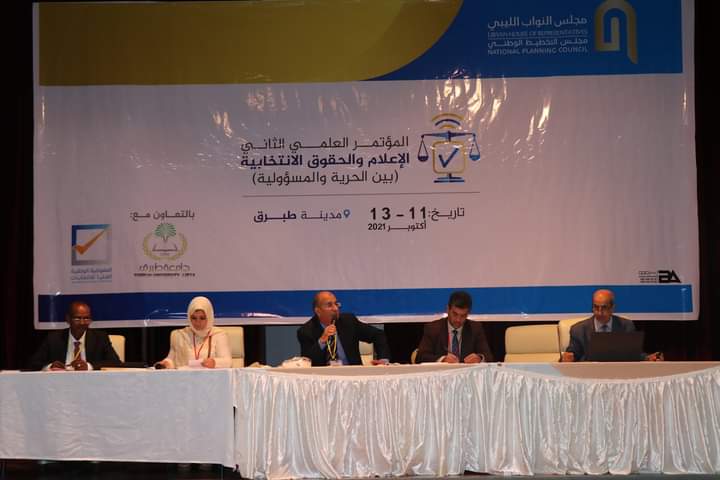 بمشاركة المفوضية العليا للانتخابات وجامعة طبرق وتنظيم مجلس التخطيط الوطني عقد خلال الفترة من 11 الي 13 اكتوبر2021 م المؤتمر العلمي الثاني حول (الإعلام والحقوق الانتخابية بين الحرية والمسؤولية) بفندق دار السلام بمدينة طبرق.