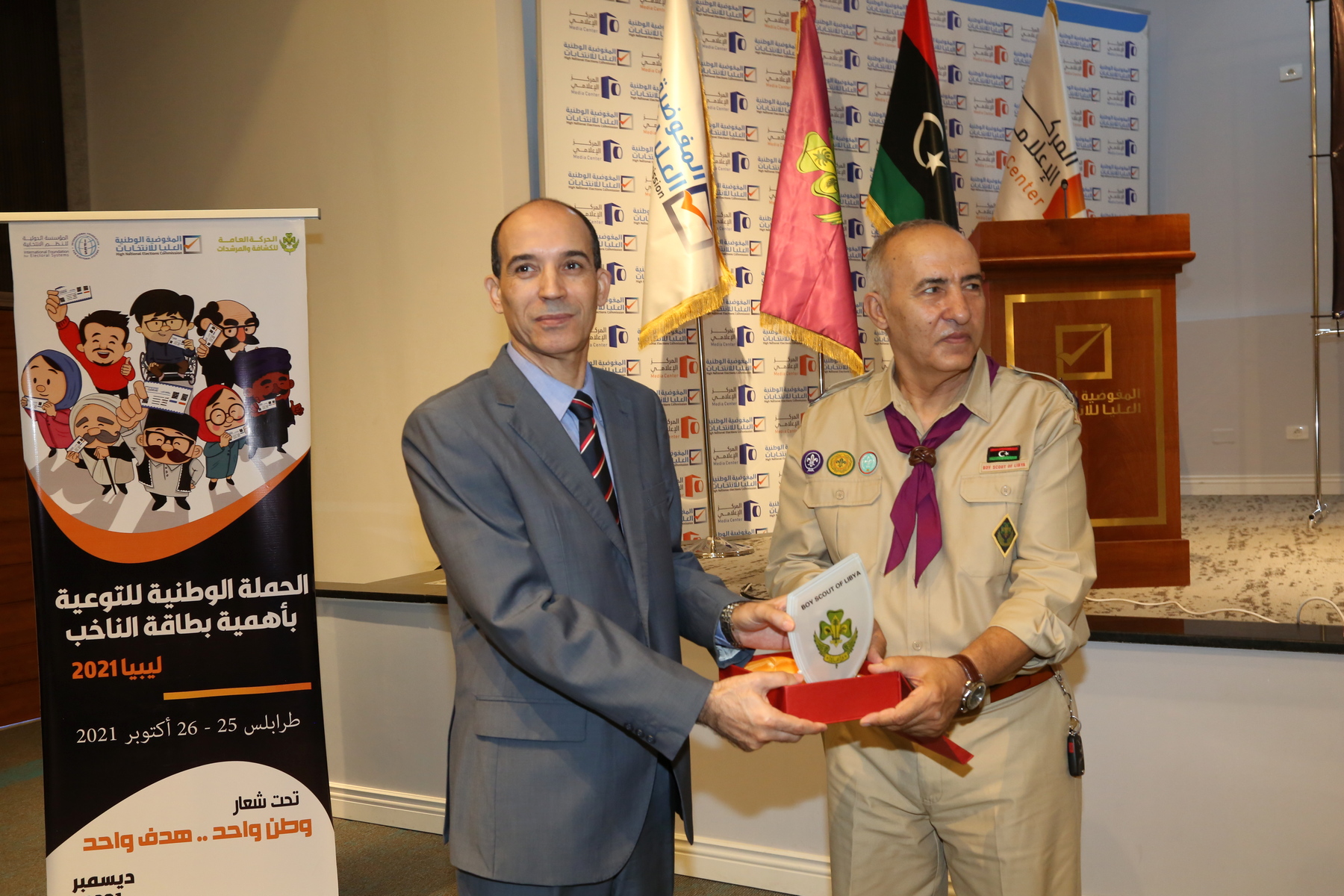 ومن جانبه أكد القائد العام لحركة الكشافة والمرشدات السيد د. فرج بن سليم على أهمية التعاون والشراكة التي تربط المفوضية بحركة الكشافة خلال السنوات الماضية، مشيرا إلى التاريخ العريق للحركة وما تقدمه على مختلف الأصعدة في سبيل تشكيل وعي وطني يعزز القيم الديمقراطية.