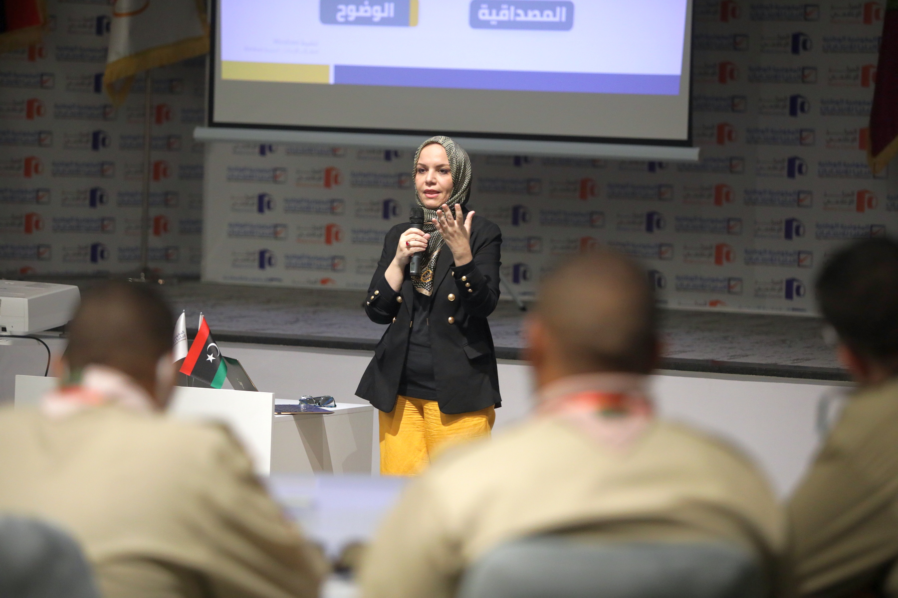 وقدمت منسق التوعية بالمفوضية السيدة عائشة ثبوت عرضا توضيحياً حول التأسيس والمنجز للمفوضية والعلاقة مع شركائها، أوضحت فيه المفاهيم العامة للمفوضية وتأسيسها، والتحضيرات للانتخابات القادمة والتجهيز لها، وعلاقة المفوضية مع شركائها والسياقات المتبعة في التوعية الانتخابية.