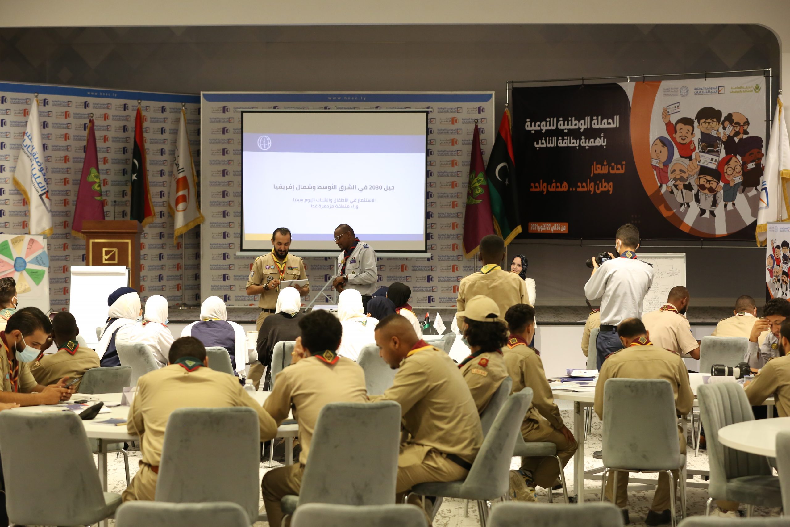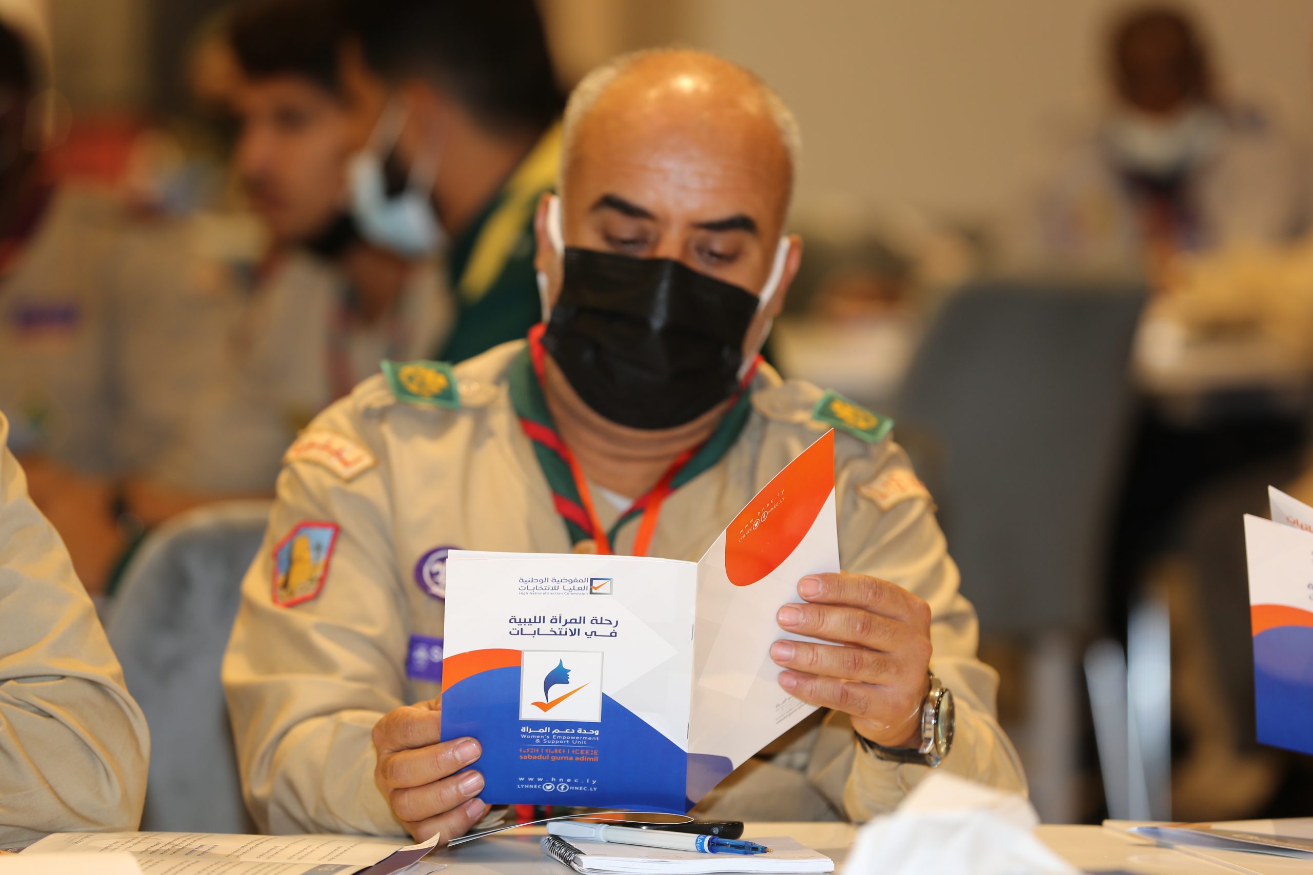 اختتم مساء اليوم الثلاثاء 26 اكتوبر 2021 م البرنامج الخاص بالتدريب حول توزيع بطاقة الناخب ، الذي نظمته المفوضية الوطنية العليا للانتخابات بالتعاون مع الحركة العامة للكشافة والمرشدات في ليبيا والمنظمة الدولية للنظم الانتخابية IFES، ضمن الحملة الوطنية للتوعية بأهمية بطاقة الناخب تحت شعار “وطن واحد ـ هدف واحد”، وذلك بالمركز الاعلامي بالمفوضية .
