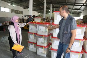 إستعداداً لانطلاق مرحلة توزيع بطاقة الناخب شرع قسم الدعم اللوجيستي بإدارة العمليات الإنتخابية بالإدارة العامة بالمفوضية الوطنية العليا للانتخابات بشحن المواد الخاصة بعملية توزيع بطاقة الناخب و التي تحتوي ايضا على المواد الطباعية اللازمة لتشغيل مراكز التوزيع بالاضافة الي مواد توعوية و إرشادية.
