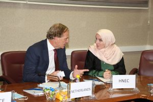 ومن جهته أثنى د . السايح على جهود المجتمع الدولي والدول المانحة الداعمة للمفوضية و الهادفة لإنهاء المرحلة الانتقالية من خلال عملية انتخابية شفافة يرضى عنها كل الاطراف و تحقق تطلعات الليبيين في دولة ديمقراطية مستقرة .