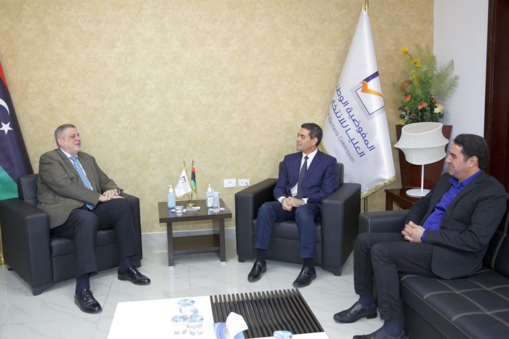 استقبل رئيس مجلس المفوضية الوطنية العليا للانتخابات السيد د. عماد السايح اليوم الأربعاء 1 ديسمبر 2021م، المبعوث الخاص للأمين العام للأمم المتحدة في ليبيا السيد يان كوبيتش، بحضور عضو مجلس المفوضية السيد عبد الحكيم الشعاب، وذلك بمقر المفوضية.
