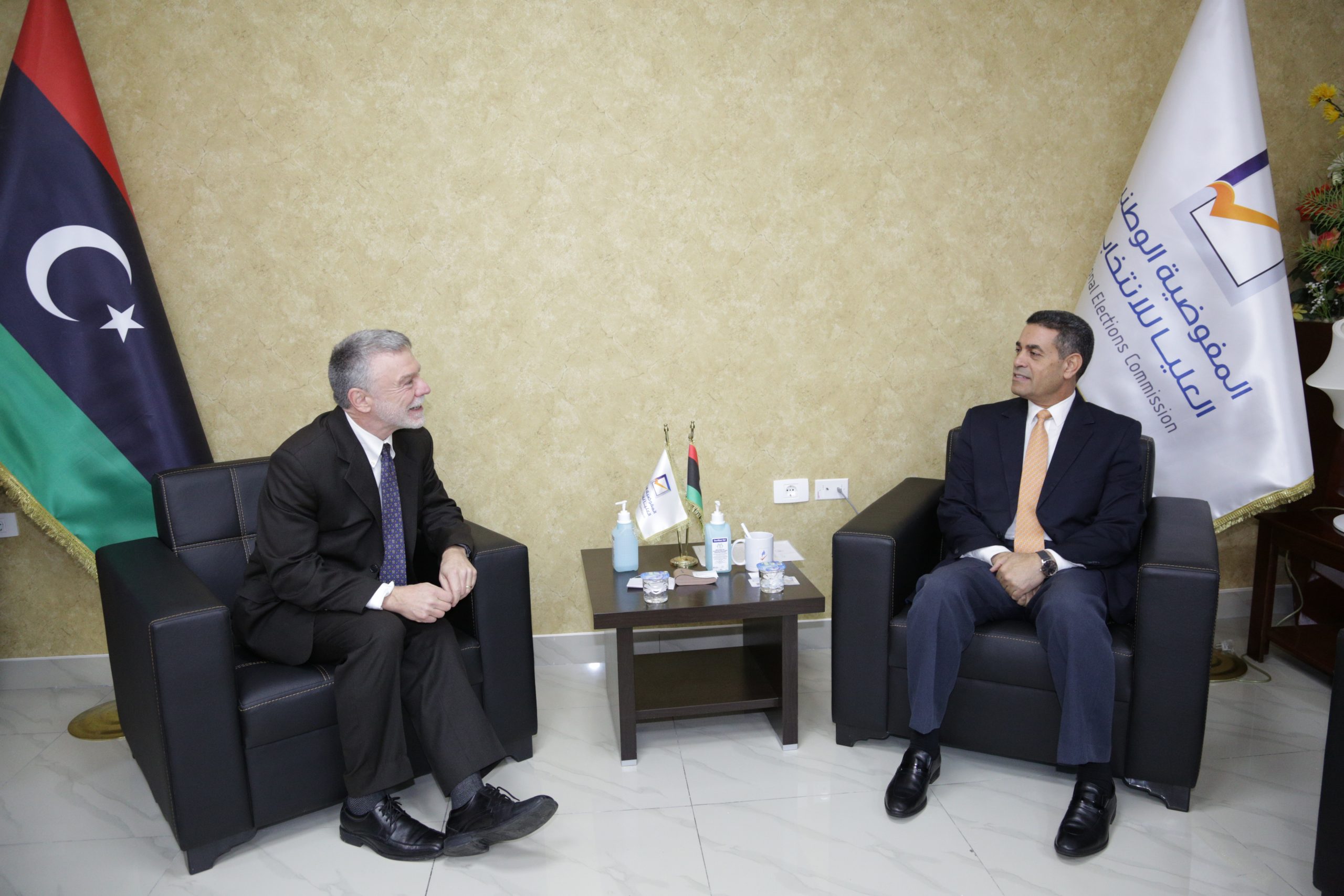 بحث رئيس مجلس المفوضية الوطنيا العليا للانتخابات مع فريق بعثة الأمم المتحدة في ليبيا مزيداً من سبل دعم المجتمع الدولي للانتخابات التي ستجرى في 24 ديسمبر الجاري، وذلك خلال الاجتماع الذي انعقد اليوم السبت 4 ديسمبر 2021م، بين رئيس مجلس المفوضية السيد د. عماد السايح ومسؤول ملف الانتخابات ببعثة الأمم المتحدة السيد جريك، بديوان المجلس.