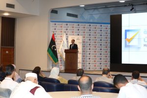 وفي كلمته أكد المدير العام بالمفوضية د. يحي الجديد عزم المفوضية على المضي قدماً لتحقيق ما يطمح إليه الليبيون وهو إجراء انتخابات حرة نزيهة، مضيفاً بأن المفوضية ما هي إلا أداة لتنفيذ هذا الاستحقاق مؤكداً في ذات الوقت على استعدادها بكامل إمكانياتها المادية والبشرية لإجراء الانتخابات البرلمانية والرئاسية بعد توافق الأطراف السياسية. مضيفاً أنه لا توجد انتخابات بدون مراقبة، لأن المراقبة تعني المصداقية و تعزيز مبدأ النزاهة الانتخابية، موضحاً أن التأخير في موعد إجراء الانتخابات لا يعني توقف العملية الانتخابية، فالمفوضية الآن بصدد متابعة ما قامت بتنفيذه خلال الفترة الماضية لإستيفاء الدروس المستفادة، و مشيراً إلى الدور الوطني الذي يضطلع به شركاء المفوضية المحليين و الدوليين كشركاء فاعلين و أساسيين في عمليات التوعية و المراقبة.