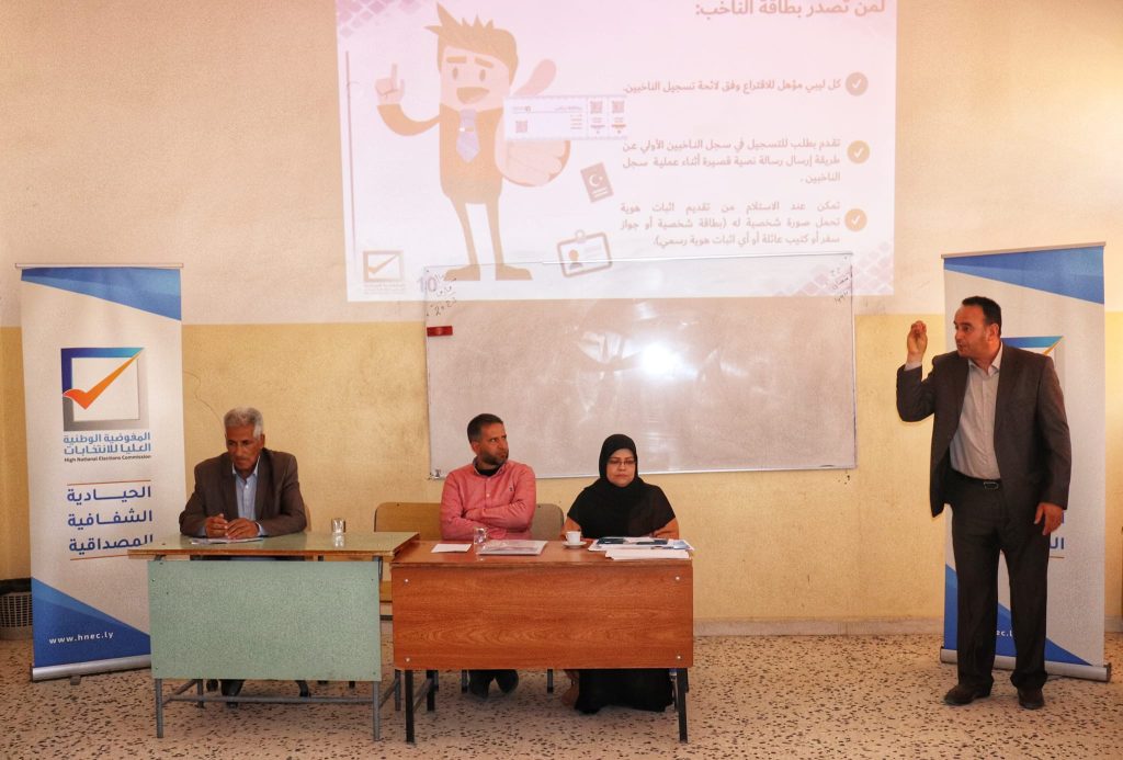 في إطار الخطة العامة لإدارة التوعية والتواصل بالمفوضية الوطنية العليا للانتخابات، وبإشراف منسقي التوعية والتواصل في مكاتب الإدارة الانتخابية بكافة مناطق ليبيا، تواصل المكاتب تنظيم حملات توعية انتخابية حول العملية الانتخابية، وكيفية التسجيل بسجل الناخبين، واستلام بطاقة الناخب، تستهدف الطلاب في مرحلة الدراسة الثانوية بعدد من المدارس في مختلف مناطق ليبيا.