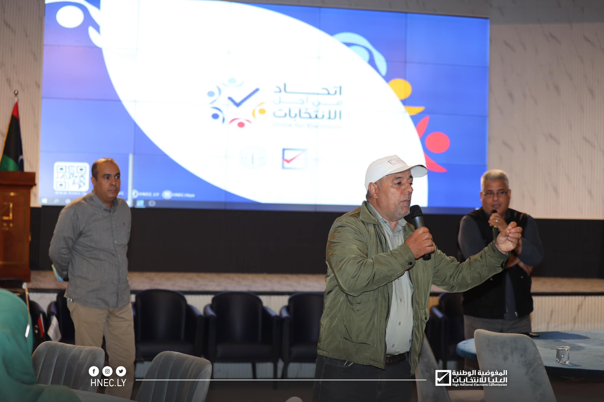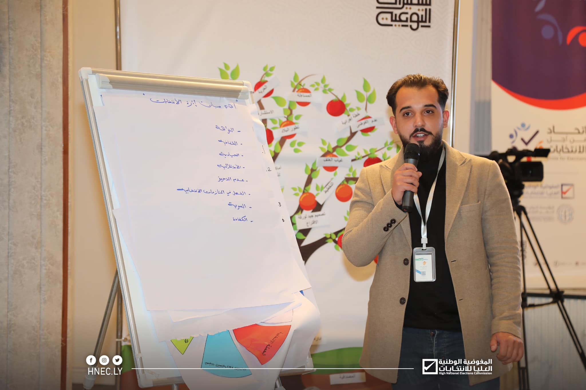 لليوم الرابع على التوالي تتواصل فعاليات دورة التوعية الانتخابية للاتحاد العام لطلبة ليبيا، وهو أسبوع تثقيفي توعوي لطلبة الجامعات تنظمه المفوضية بالتعاون مع المنظمة الدولية للنظم الانتخابية (IFES)، وذلك بقاعة شهداء 2مايو بالمركز الإعلامي بالمفوضية.