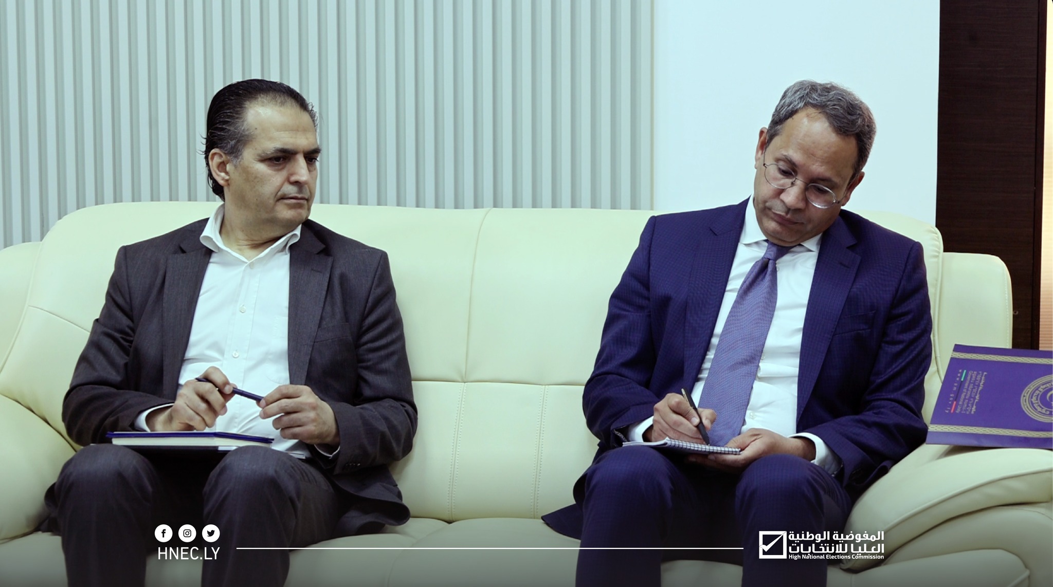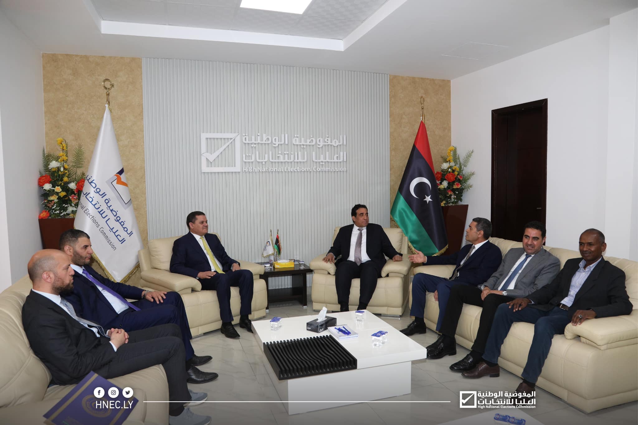 استقبل رئيس مجلس المفوضية السيد د. عماد السايح اليوم الأحد 14 مايو 2023م، كلاً من رئيس المجلس الرئاسي السيد محمد المنفي، ورئيس حكومة الوحدة الوطنية السيد عبد الحميد الدبيبة، ووزير الدولة لشؤون مجلس الوزراء السيد عادل جمعة، ووزير الدولة للاتصال والشؤون السياسية السيد وليد اللافي، ووزير الداخلية السيد عماد الطرابلسي، ومستشار وزير المالية السيد أبوبكر الجفال، بحضور عضويّ مجلس المفوضية السيد عبد الحكيم الشعاب والسيد أبوبكر مرده، وذلك بديوان مجلس المفوضية.