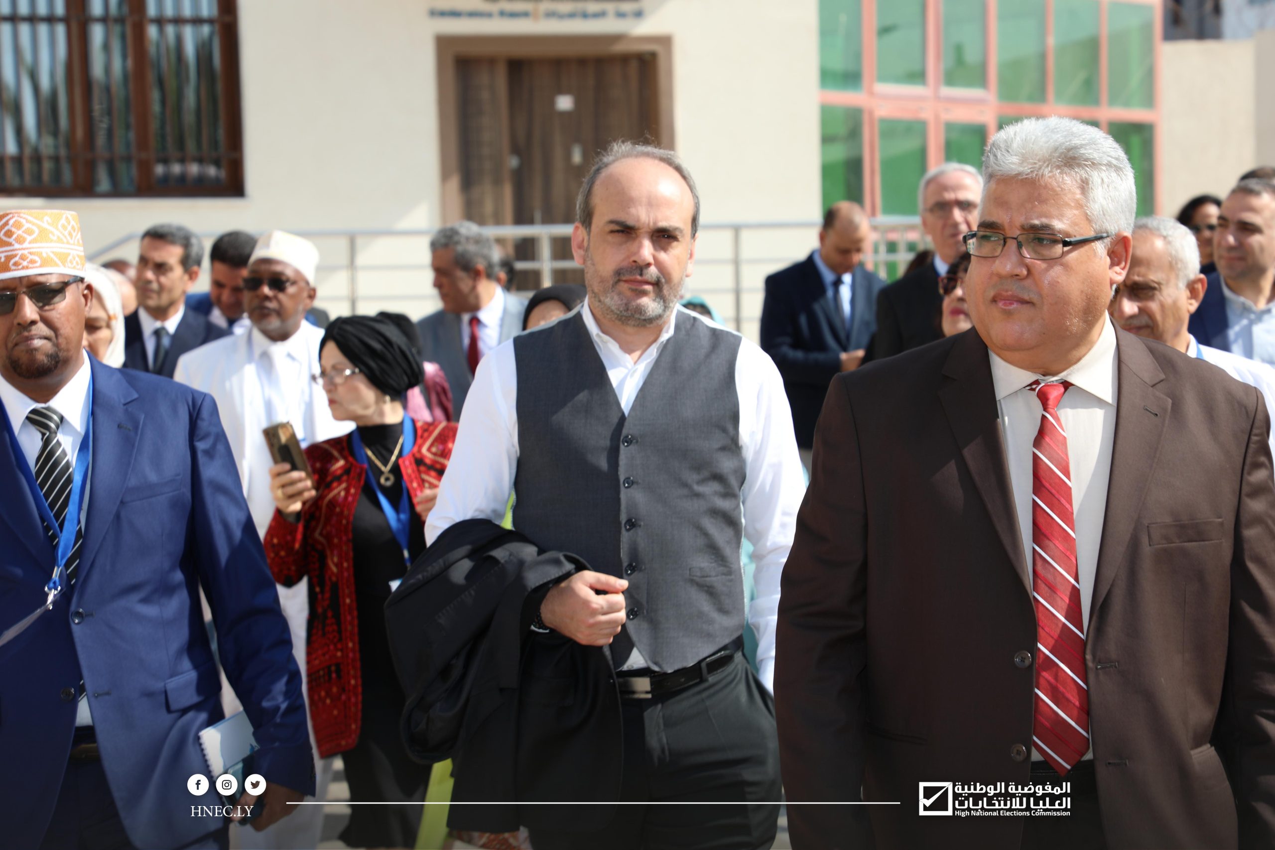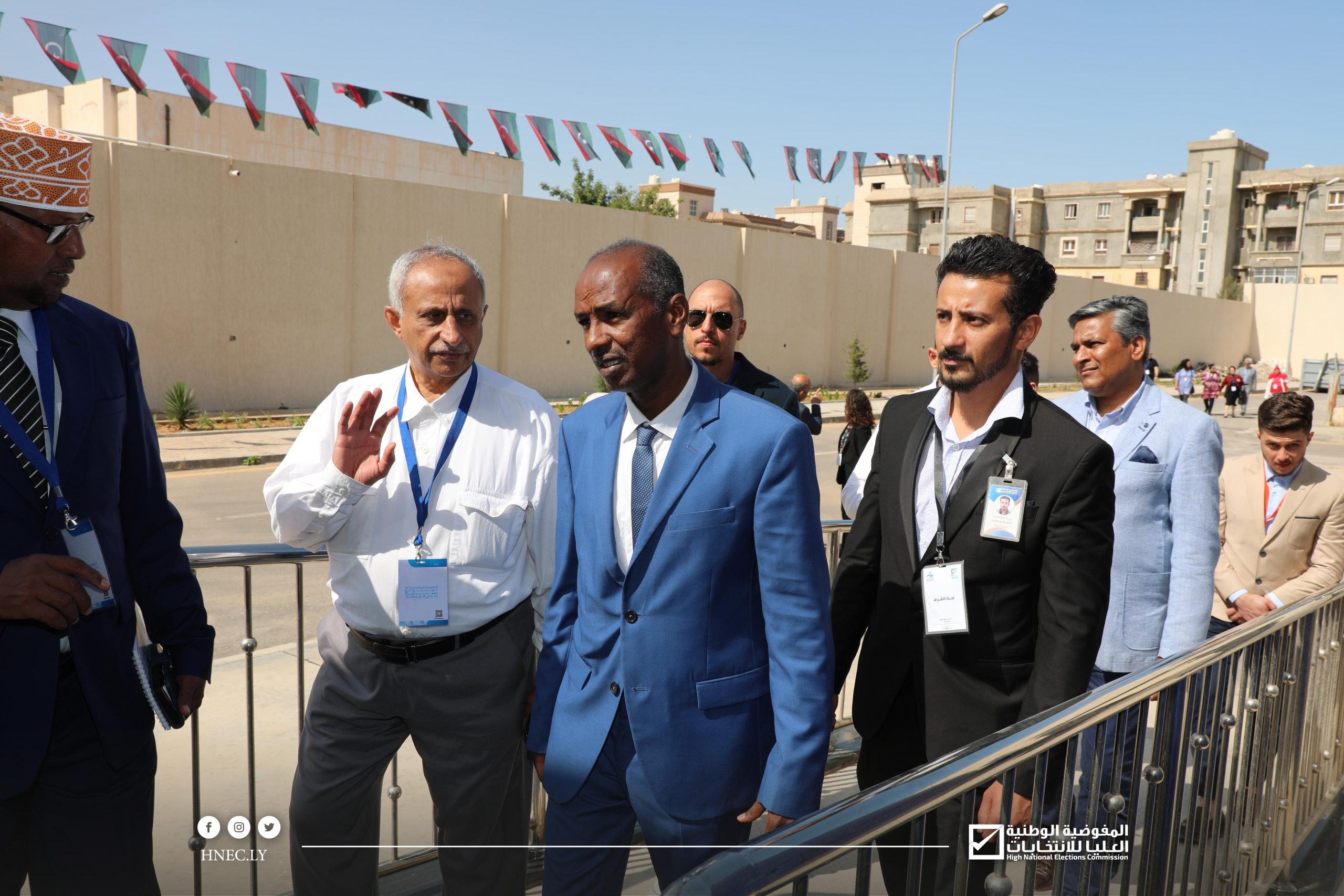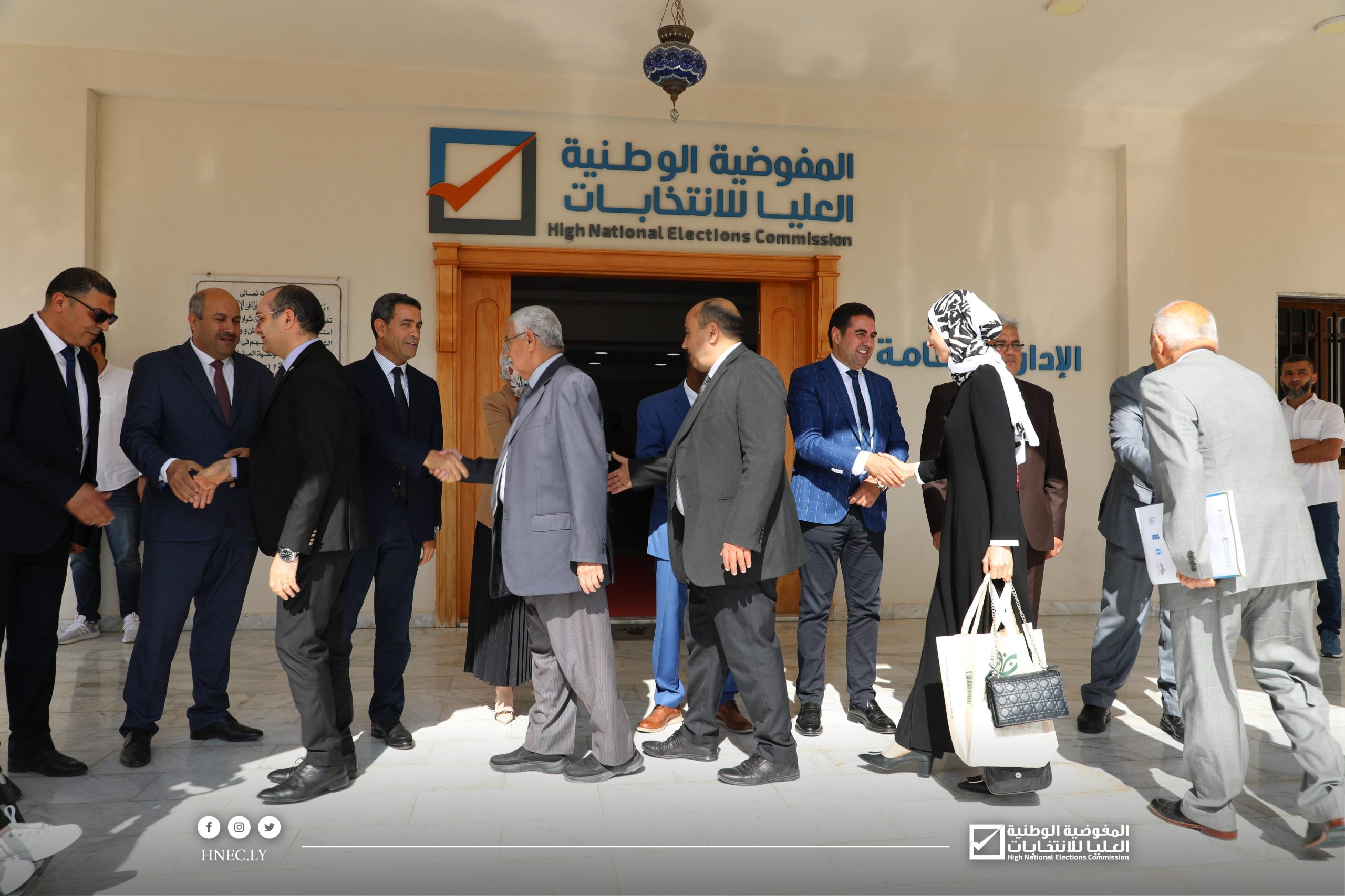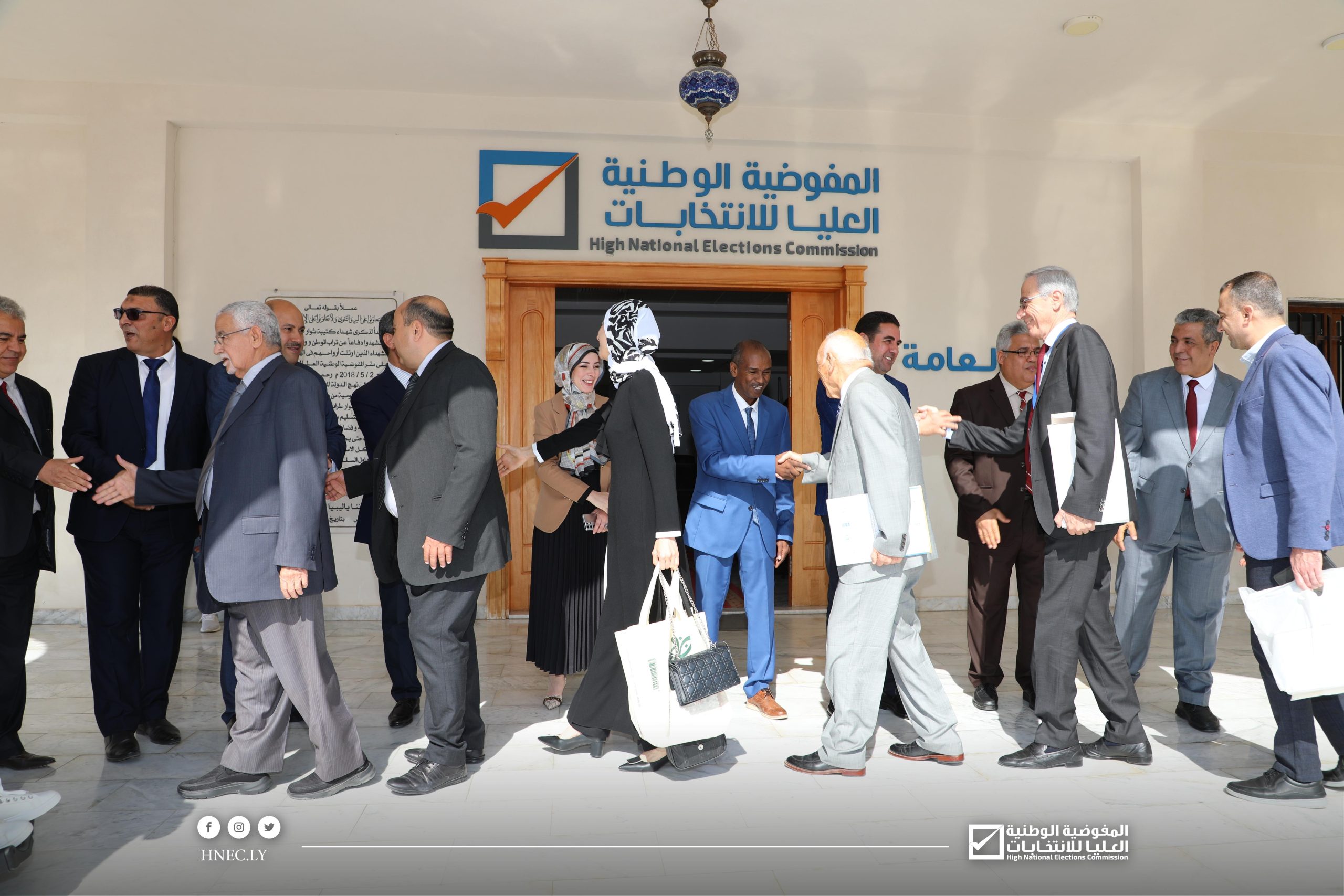وكان في استقبال الوفد رئيس مجلس المفوضية السيد د. عماد السايح وأعضاء المجلس السيدة رباب حلب والسيد عبد الحكيم الشعاب والسيد أبوبكر مردة والمدير العام السيد محمد اقحيص وعدد من مديري الإدارات بالمفوضية.