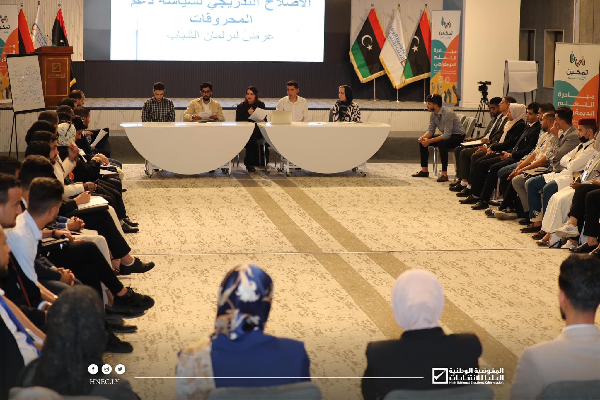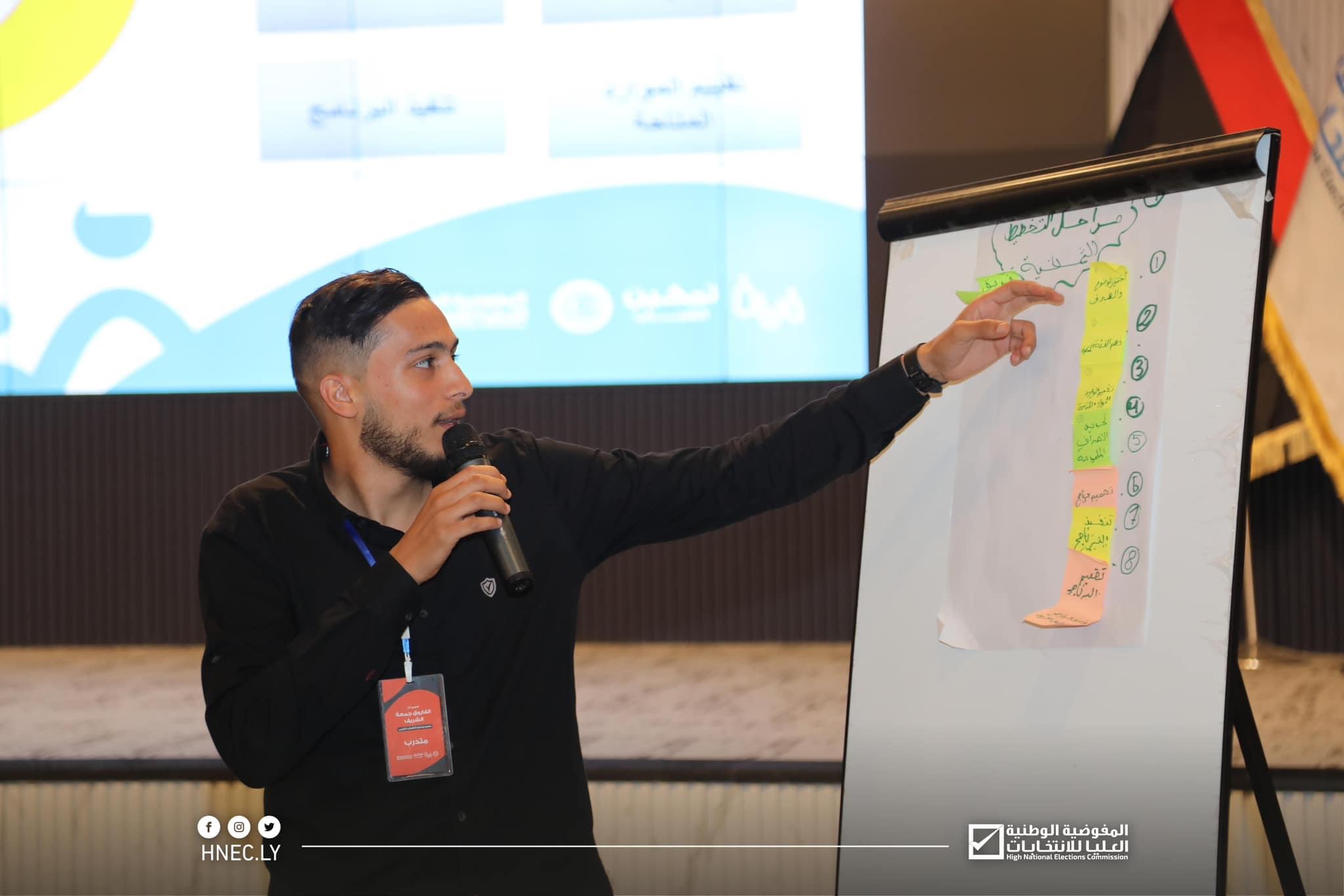 اختتمت اليوم الاربعاء 07 يونيو 2023م، فعاليات برنامج تدريب أعضاء برلمان الشباب الليبي، لبناء القدرات وتعزيز الثقافة المدنية والسياسية، الذي نظمته المفوضية بالتعاون مع حكومة الوحدة الوطنية، وبرنامج الأمم المتحدة الإنمائي ومنظمة أيفس للنظم الانتخابية، وذلك بالمركز الإعلامي للمفوضية.