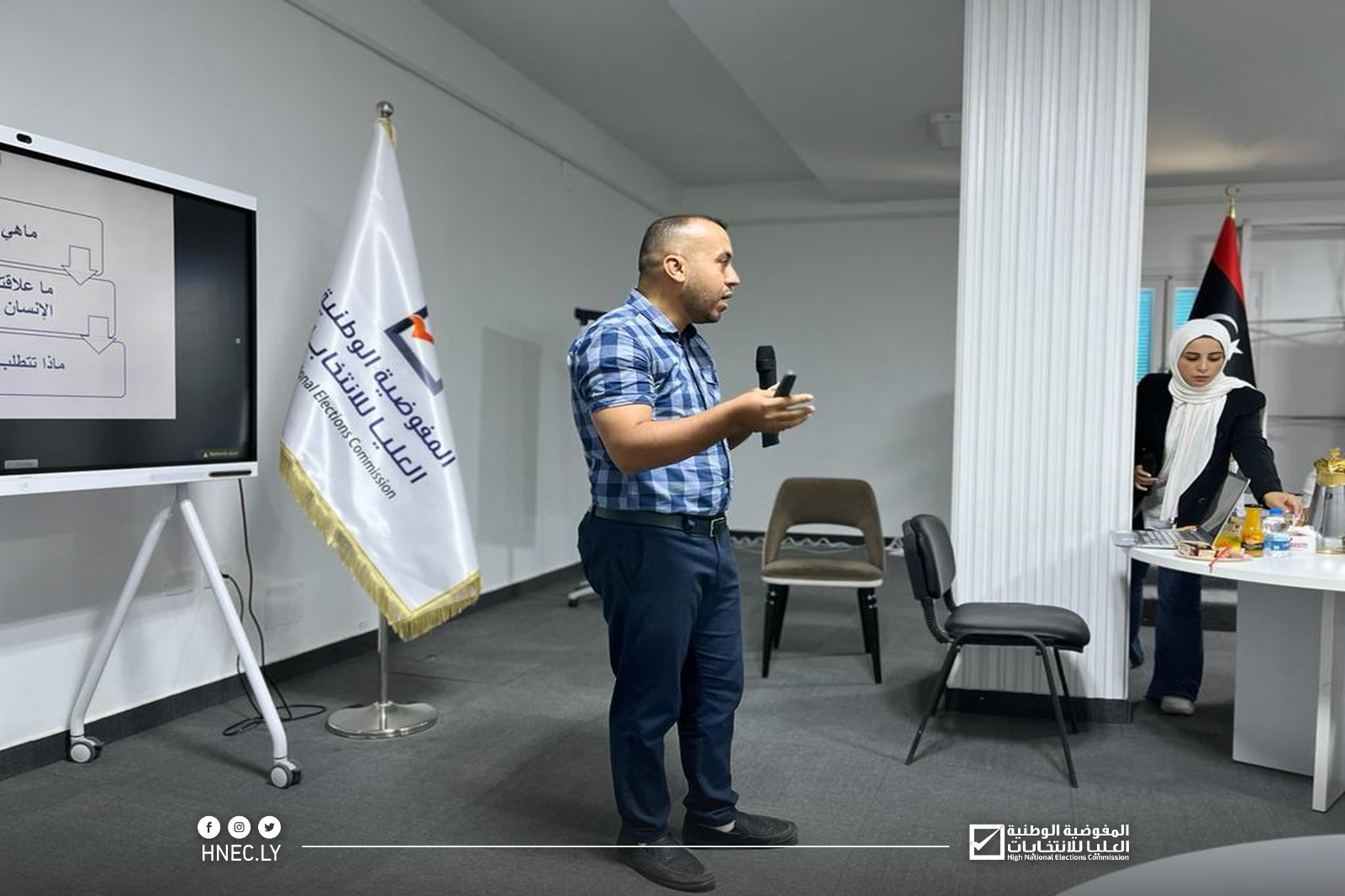 الجلسة والتي أدارتها مسؤولة ملف المرأة بمكتب مصراتة السيدة هالة اللبيدي، استهدفت عددا من منظمات المجتمع المدني المعنية بالمرأة في نطاق مدينة مصراتة، وناقشت التحديات والإشكاليات التي تواجه مشاركة المرأة في الانتخابات وسبل تذليلها حيث استعرض رئيس منظمة (نداء) السيد موسى القنيدي المفاهيم الأساسية للانتخابات والضمانات المباشرة للانتخابات الحرة ذات الصلة بحقوق الإنسان والتحديات والعقبات أمام المرأة الليبية في الانتخابات القادمة.