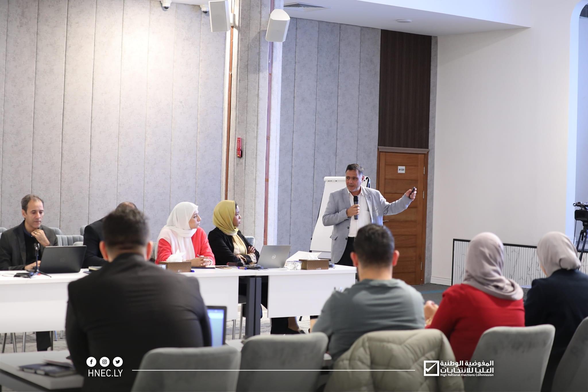 اختتمت المفوضية الوطنية العليا للانتخابات، اليوم الخميس 14/12/2023 ، ورشة تدريبية حول ” نظرة عامة حول الانتخابات وخصائصها في ليبيا “، بالتعاون مع المؤسسة الدولية للديمقراطية والانتخابات (IDEA).