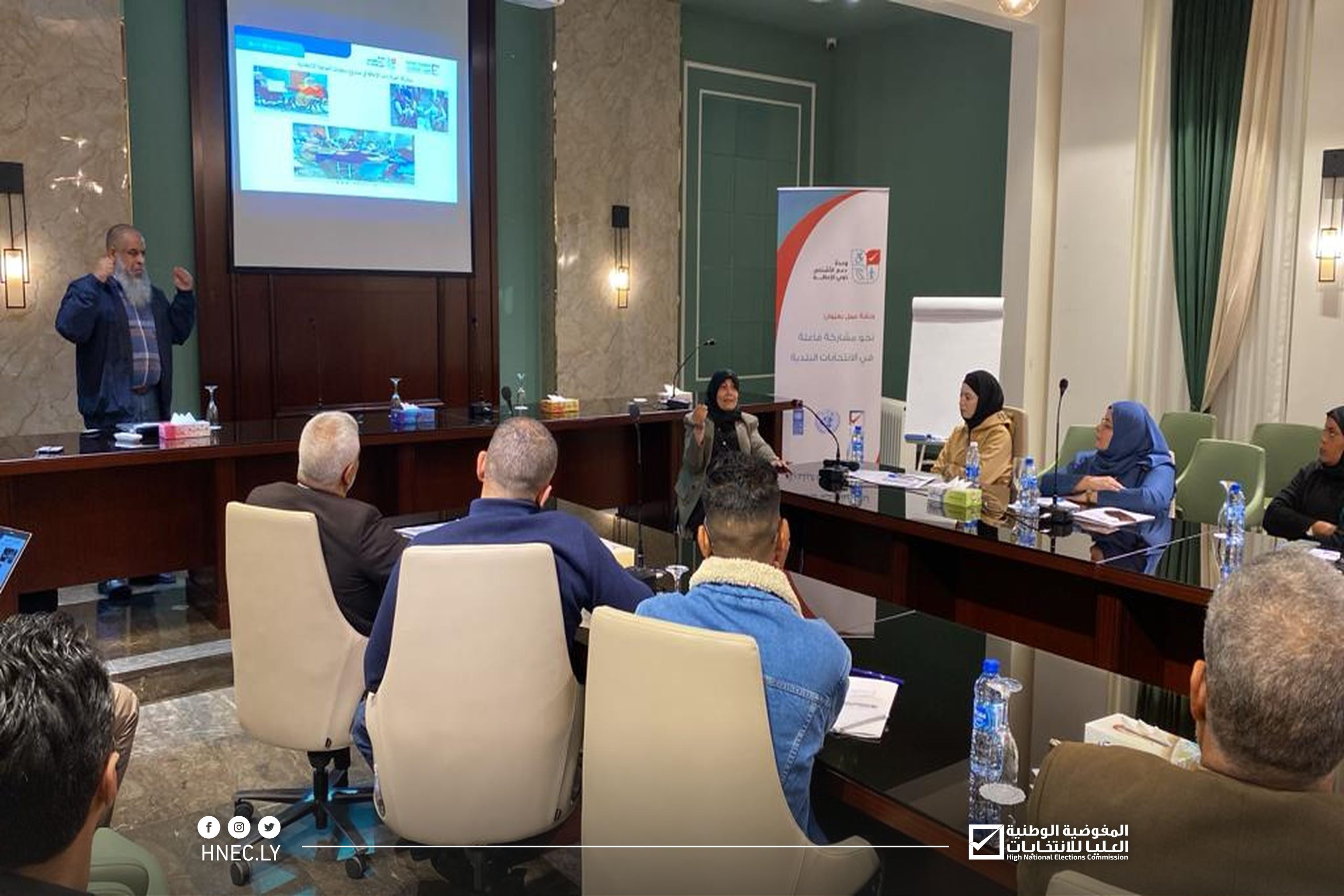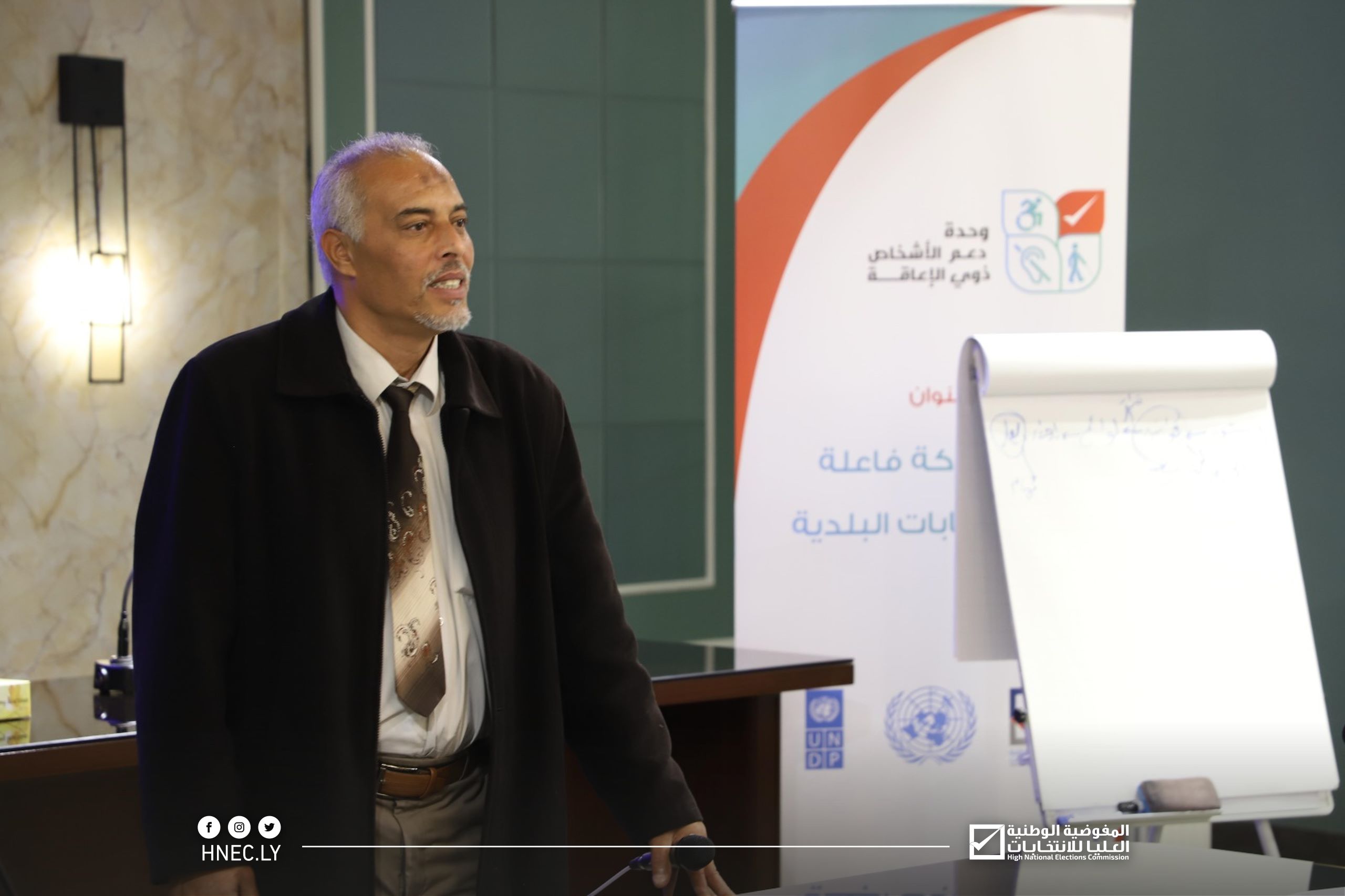 نظمت وحدة دعم الأشخاص ذوي الإعاقة بالمفوضية، اليوم الأربعاء الموافق 20 ديسمبر 2023، بالتنسيق مع مكتب الإدارة الانتخابية بنغازي وبالتعاون مع برنامج الأمم المتحدة الإنمائي، فعاليات ورشة عمل تحت شعار “نحو مشاركة فاعلة في الانتخابات البلدية”