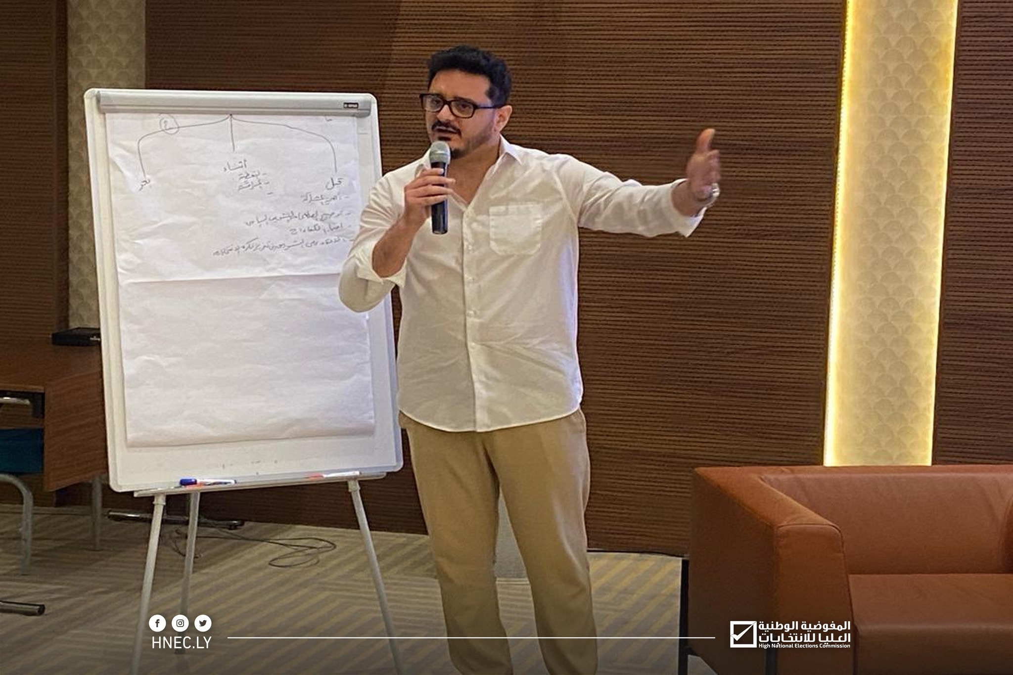 وأضاف أن “المفهوم السائد لدى الجميع أن مسؤولية تنفيذ العملية الانتخابية هي مسؤولية المفوضية فقط وهذا مفهوم خاطئ، لأن المفوضية ليس لديها مصلحة مباشرة في تنفيذ العملية الانتخابية بل هي مصلحة جميع الليبيين وعندما تكون المصلحة عامة يجب أن يشترك جميع الليبيين في الوصول بهذه المصلحة إلى بر الأمان والنجاح” مشيراً إلى أهمية دور الإعلام في تغيير المفاهيم الخاطئة، والعمل على توسيع نطاق المشاركة الانتخابية، للوصول إلى معدلات عالية من المصداقية.
