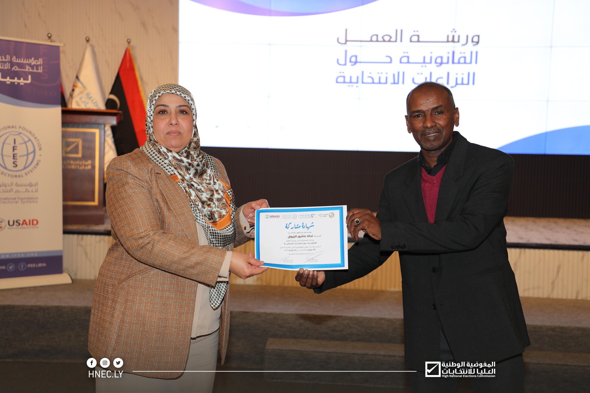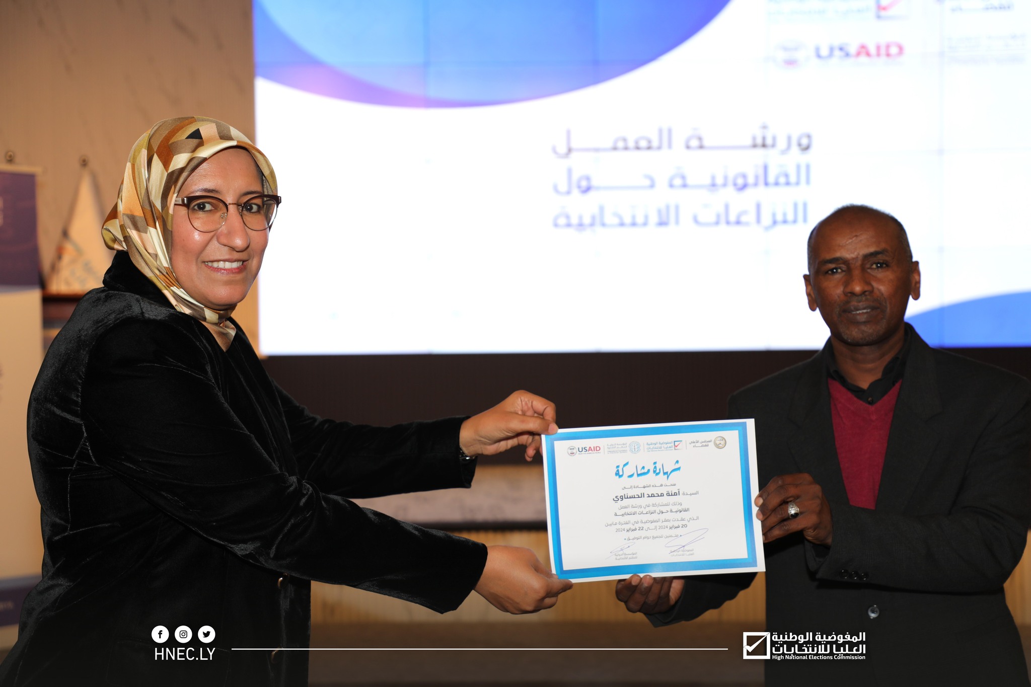 وفي ختام البرنامج وزعت شهادات المشاركة على المشاركين، والذين بدورهم أكدوا على أهمية هذه البرامج التدريبية وفاعليتها في تذليل الصعوبات مستقبلاً، لضمان نجاح العمليات الانتخابية وفق أعلى المعايير.