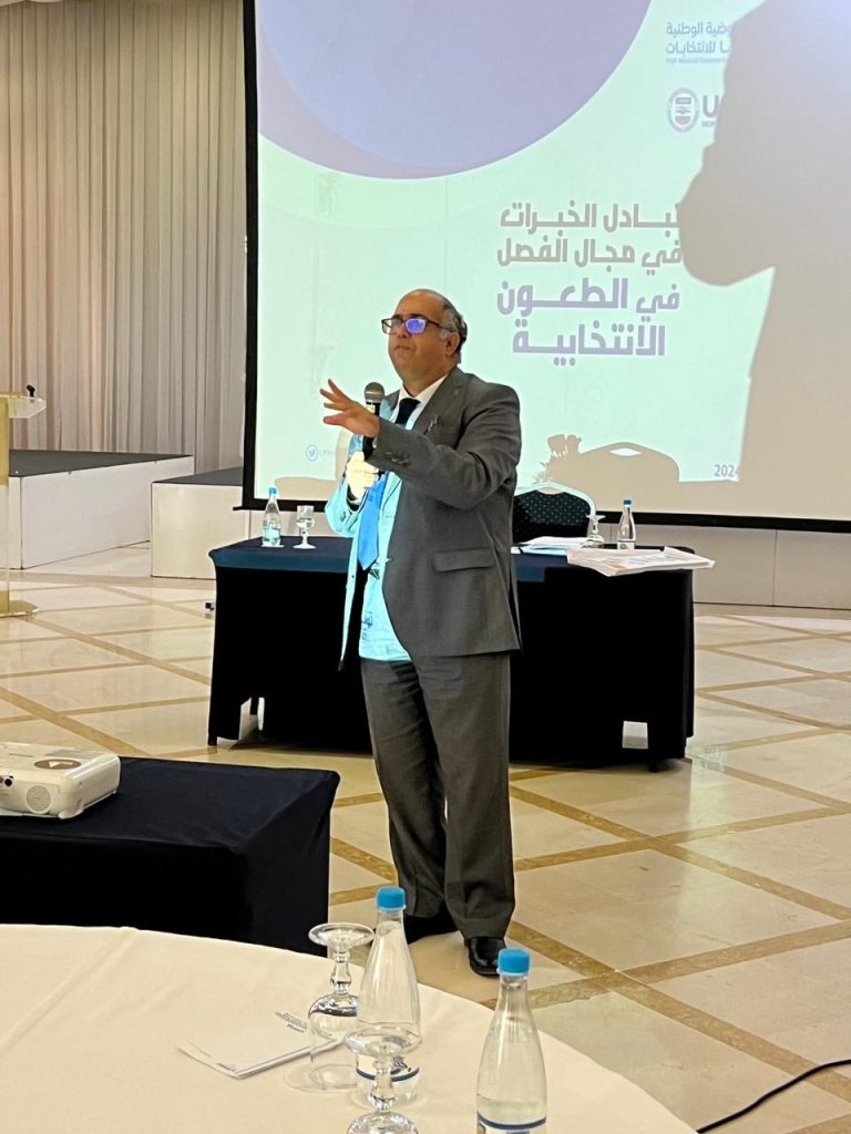 اليوم الخميس 29 فبراير 2024م، ورشة عمل (تبادل الخبرات في مجال الفصل في الطعون الانتخابية) التي نظمتها تحت إشراف مكتب الشؤون القانونية وبالتعاون مع المجلس الأعلى للقضاء والمؤسسة الدولية للنظم الانتخابية،