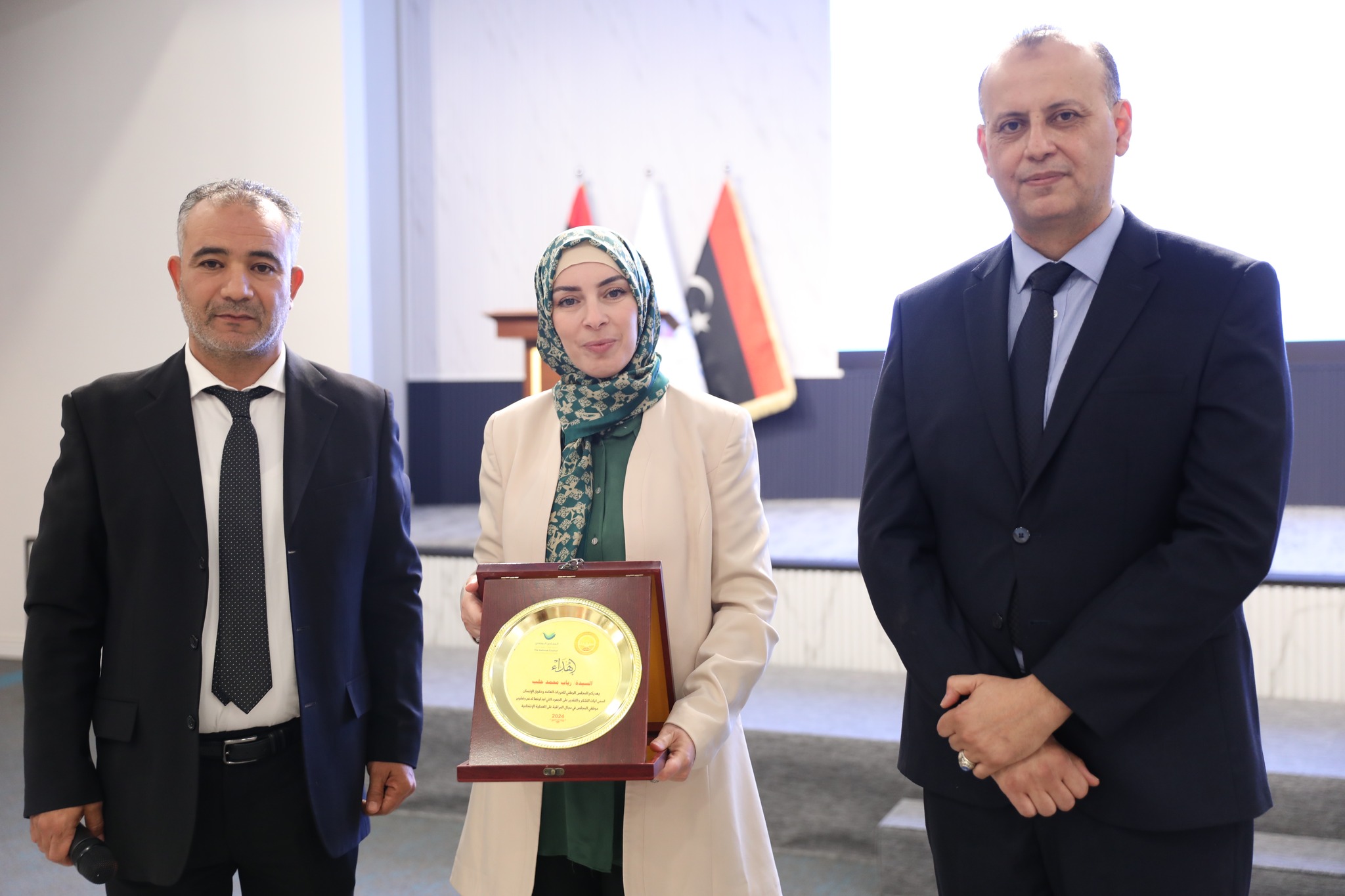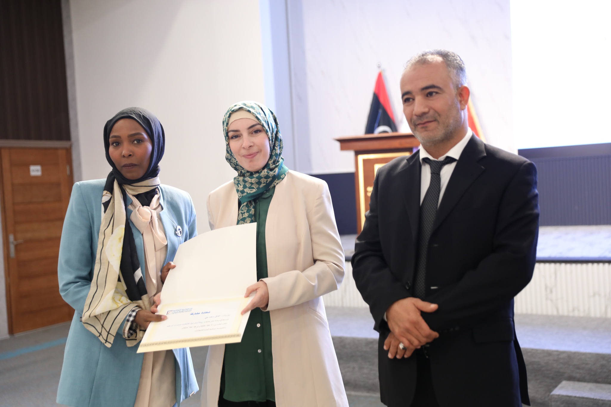 وفـي نهـايـة الـدورة وزعـت شهـادات المشاركة على المشاركين وذلك بحضور كلاً من عضو مجلس المفوضية السيدة/ رباب حلب، ومدير إدارة التسجيل والعمليات الخارجية السيد/ وليد سيالة.