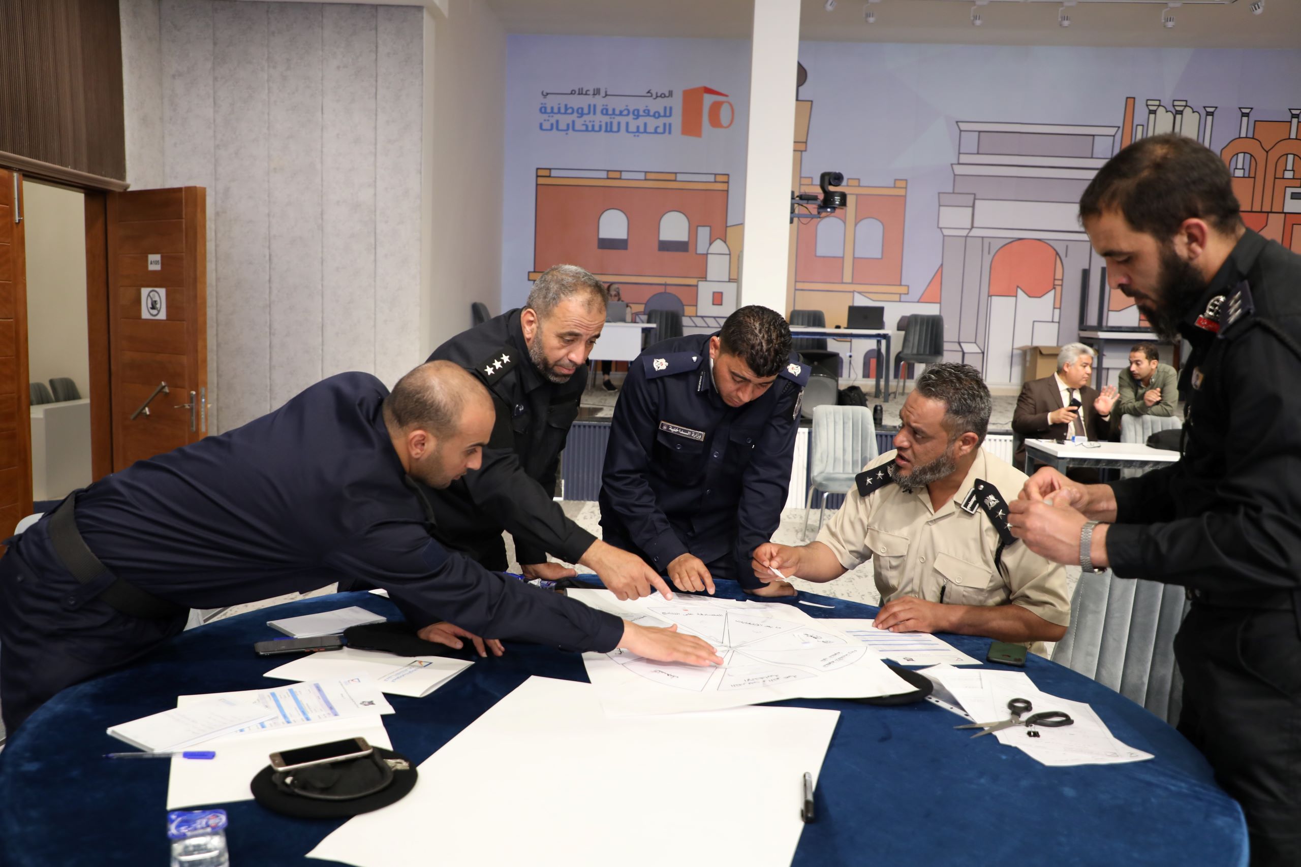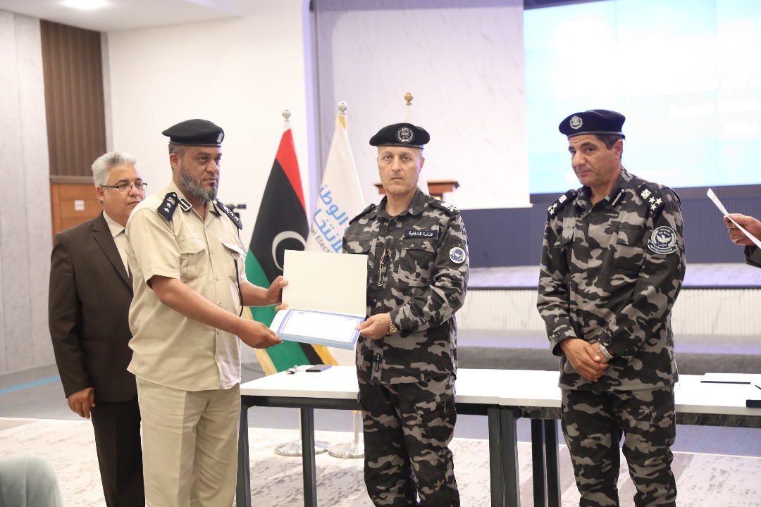 وشهدت الجلسة الختامية تقديم شهادات مشاركة إلى المتدربين، تجدر الإشارة إلى أن البرنامج أقيم تحت إشراف إدارة العمليات الميدانية، واستمر على مدى يومين مستهدفاً (35) متدرباً، من ضباط وضباط صف من المنتسبين لوزارة الداخلية بالمنطقة الغربية، ويهدف إلى رفع قدراتهم في مجال تأمين الانتخابات.