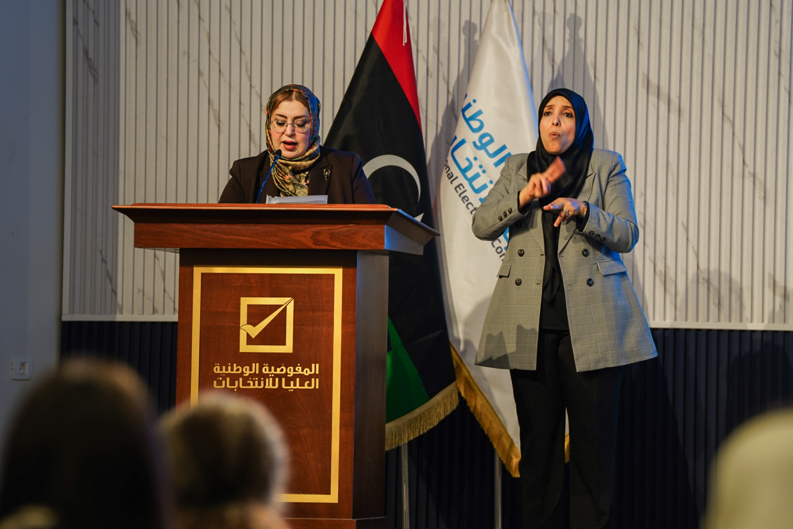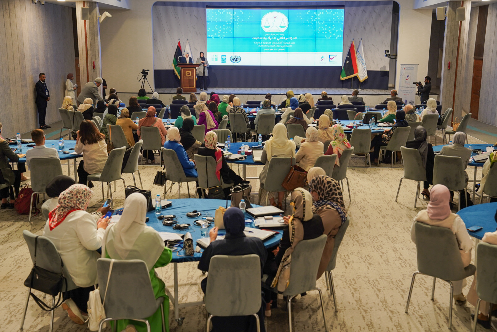 انطلقت صباح اليوم الاثنين 27 مايو 2024م، فعاليات المؤتمر الثاني (الوطني) للمرأة والانتخابات تحت عنوان: “الإصلاحات القانونية الداعمة للمرأة في مجال الترشح للانتخابات، الذي تنظمه المفوضية بالتعاون مع هيئة الأمم المتحدة للمرأة، وبرنامج الأمم المتحدة الإنمائي، وبعثة الأمم المتحدة للدعم في ليبيا، بحضور عضو مجلس المفوضية: السيدة رباب حلب، والمدير العام السيد محمد اقحيص ونائبة الممثل الخاص للأمين العام للأمم المتحدة في ليبيا السيدة ستيفاني خوري، ووزيرة الدولة لشؤون المرأة السيدة حورية طرمال، وعضو مجلس النواب السيدة فوزية بوغالية، وممثلي بعثة الأمم المتحدة لدعم الانتخابات، ولفيف من الشخصيات النسائية الممثلة لمؤسسات المجتمع المدني المعنية بالمشاركة السياسية للمرأة.