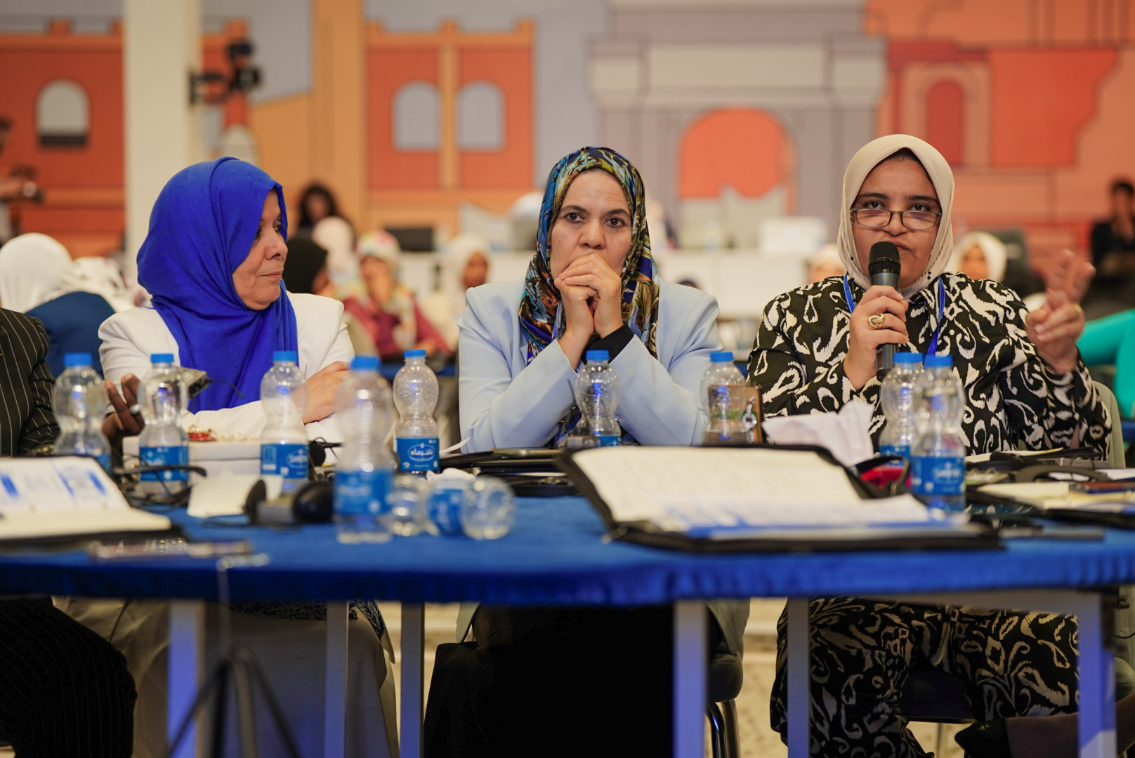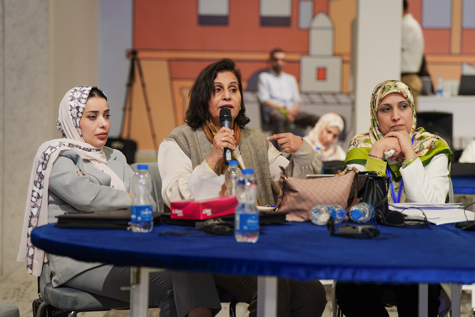 وشهدت فعاليات الجلسة الثانية عرضا للخبيرة الدولية السيدة سالينا جوشي حول أفضل الممارسات الدولية التي تضمن زيادة مقاعد المرشحات، وعرضا قدمته السيدة د. هبة حدادين الخبيرة الدولية في مجال الحملات الانتخابية، حول أهمية الأطر القانونية التي تمكن المرأة من المشاركة الكاملة في العملية السياسية، وحماية المرأة من العنف أثناء الانتخابات.