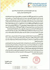 في التاسع من هذا الشهر يونيو 2024 أعلنت المفوضية عن انطلاق عملية تسجيل الناخبين لانتخابات المجالس البلدية (المجموعة الأولى)، وقد شهدت هذه العملية إقبالاً متزايداً من مواطني تلك البلديات، وحققت معدلات التسجيل مؤشرات موجبة طيلة الفترة الأمر الذي دفع بالكثير من مواطني ومنظمات المجتمع المدني بتلك البلديات إلى المطالبة بتمديد المدة الزمنية لهذه العملية والتي تنقضي بتاريخ هذا اليوم الموافق 23 يونيو 2024 وحيث أن معدلات الإقبال على التسجيل لاتزال تحقق معدلات موجبة، فقد أصدر مجلس المفوضية بتاريخ هذا اليوم قراره رقم ( 72 ) لسنة 2024، والقاضي بتمديد الفترة الزمنية لعملية تحديث سجل الناخبين إلى يوم الأحد الموافق 07 يوليو 2024، استجابةً للمطالبات التي وردت إلى المفوضية لإتاحة الفرصة لمَن لم يسجل ويرغب في أن يكون من ضمن المشاركين الفاعلين في بلديته.