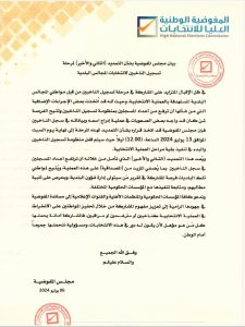 بيان مجلس المفوضية بشأن التمديد (الثاني والأخير) لمرحلة تسجيل الناخبين لانتخابات المجالس البلدية