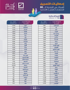 احصائيات التسجيل الاجمالية والتفصيلية للمجالس البلدية الــ60 المُستهدفة بالعملية الانتخابية