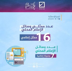 اجمالي عدد وسائل لإعلام المسجلة 7 وسيلة إعلامية وإجمالي عدد ممثلي وسائل الإعلام 16 ممثل إعلامي.