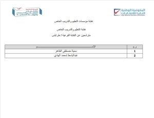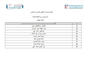 #القوائم النهائية للمترشحين لانتخابات نقابة مؤسسات التعليم والتدريب الخاص عن النقابة العامة والنقابة الفرعية طرابلس وإجدابيا، وجهاز الرقابة.