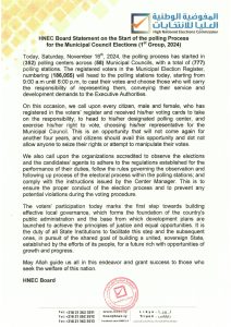 #بيان مجلس المفوضية بشأن الإعلان عن بداية عملية الاقتراع لانتخابات المجالس البلدية (المجموعة الأولى)