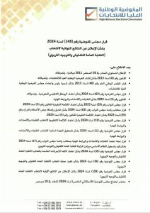 مجلس المفوضية رقم (148) لسنة 2024 بشأن الإعلان عن النتائج الأولية لانتخاب(النقابة العامة للتفتيش والتوجيه التربوي)
