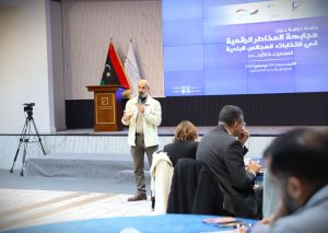 الإطار القانوني المنظم للفضاء الرقمي في ليبيا: قدمها الدكتور شوقي قداس، حيث تناول الورقة البحثية القوانين المنظمة للفضاء الرقمي وتأثيرها على العملية الانتخابية.