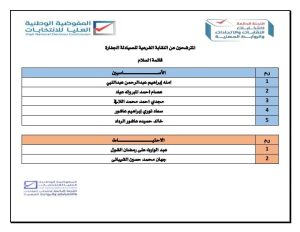 المترشحين الأولية لانتخاب النقابات الفرعية لنقابة الصيادلة.