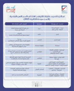 تقديم طلبات الترشح لانتخاب المجالس البلدية (المجموعة الثانية 2025).