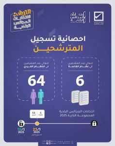 إحصائية تسجيل المترشحين الأسبوع الأول : خلال الفترة من 19 – 23 يناير 2025
