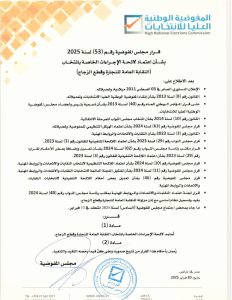 قرار مجلس المفوضية رقم (53) لسنة 2025 بشأن اعتماد لائحة الإجراءات الخاصة بانتخاب (النقابة العامة للنجارة وقطع الزجاج)