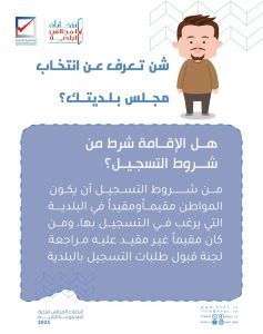 من شروط التسجيل أن يكون المواطن مقيماً ومقيداً في البلدية التي يرغب في التسجيل بها، ومن كان مقيماً غير مقيد عليه مراجعة لجنة قبول طلبات التسجيل بالبلدية.