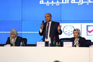 وجاء المحور الأول من الورشة بعنوان “نظرة مستقبلية لقواعد الاختصاص بفض المنازعات الانتخابية”، قدمت فيها ورقة علمية لرئيس اللجنة العلمية للمؤتمر الدكتور نصر الدين الصخفان، وأدارت الجلسة الدكتورة عبير الطوير، فيما تناول المحور الثاني رصد مواطن القصور التشريعي في القواعد الإجرائية لتسوية المنازعات الانتخابية، بورقة علمية للأستاذ سالم احميد، وأدار الجلسة الدكتور عابد بوفراج.