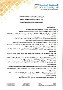قرار مجلس المفوضية رقم (96) لسنة 2025 بشأن الإعلان عن النتائج النهائية لانتخاب النقابة العامة للبناء والتشييد والإنشاءات